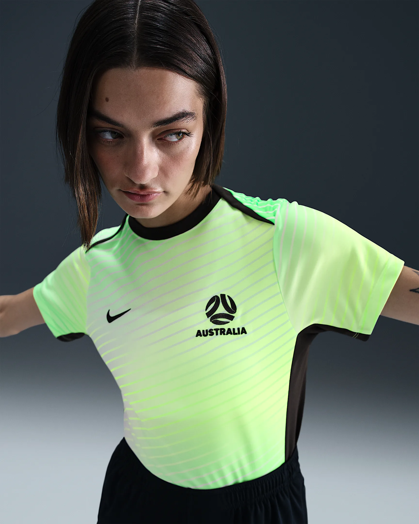 Bestel hier het Nike Australië anthem trainingsjack 2025-2026 - Donkergroen/Lime/Roze voor dames. Dit trainingsjack dragen de spelers/speelsters van Australië tijdens de opkomst op het veld voorafgaande aan de wedstrijden gedurende het seizoen 2025-2026. Dit anthem trainingsjack kun je bestellen in de maten XS, S, M, L, XL.