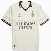Als je aan Milaan denkt, kun je niet om één van de mooiste architecturale werken van de stad heen en dat is natuurlijk de kathedraal van Milaan, de Duomo Santa Maria Nascente. Het patroon op het AC Milan 4e shirt is een verwijzing naar de architectuur van de grootste kerk van Italië, waar men meer dan zes eeuwen aan heeft gebouwd. De all-over print bevindt zich over het gehele tenue. De voetbalshirts zijn verder uitgerust met een polokraag. Zowel de kraag als de band aan de onderkant van de mouwen bevatten een speciaal gotisch patroon. Alle logo’s staan op de gebruikelijke plekken. De rechterborst en de mouwen zijn uitgerust met het logo van Puma. Onder het logo van Puma op de rechterborst prijkt het logo van PLEASURES. De linkerborst bevat een monochroom clublogo. Op het midden van het tenue prijkt het logo van Emirates Fly Better en de linkermouw is uitgerust met het logo van MSC. In de nek op de achterzijde van het tenue staat de naam van de club in een gotisch lettertype. Het tenue wordt compleet gemaakt door een zwart of beige voetbalbroekje met contrasterende accenten. Dit is ook de kleurencombinatie van de sokken.