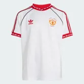 Het adidas Originals Manchester United retro uitshirt 1990-1991 is een eerbetoon aan het originele ontwerp dat voor altijd verbonden zal blijven aan een historische avond in Rotterdam. Het witte shirt wordt gekenmerkt door een subtiele, geometrische print die perfect de stijl van begin jaren ’90 weerspiegelt. De drie klassieke adidas-strepen lopen stijlvol over de schouders en zijn in stijl van de clubkleuren van Manchester United (rood/zwart), terwijl het iconische oude Manchester United-clublogo trots op de borst prijkt. In het logo bevindt zich bovendien een verwijzing naar het winnen van de Europa Cup I in 1990: ''European Cup Winners Cup – Winners 1991’’. De retro look wordt compleet gemaakt met een geribde kraag en manchetten in de clubkleuren rood en zwart, inclusief het design van subtiele blokken.