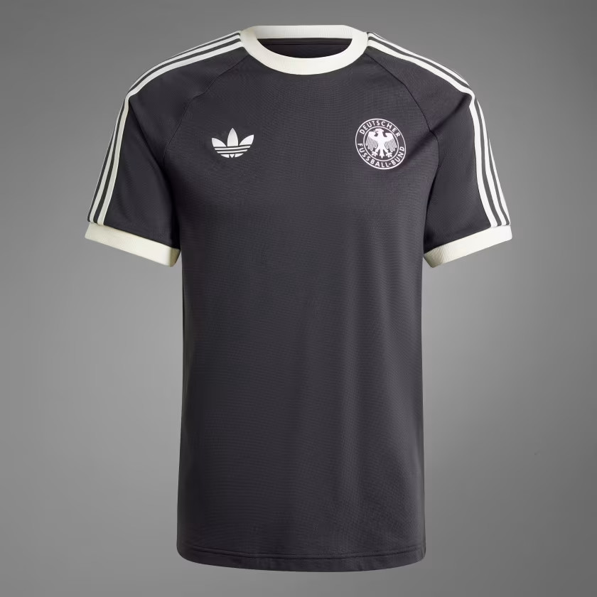 De adidas Originals Duitsland collectie is geïnspireerd door de voetbalshirts en trainingskleding van 1996, het jaar waarin het Europees Kampioenschap in Engeland plaats vond en waarin Duitsland voor de derde keer in de historie Europees kampioen werd. In de finale het Wembley Stadium versloeg ''Die Mannschaft'' outsider Tsjechië met 2-1 door twee doelpunten van Olivier Bierhoff. Andere spelers uit dit sterrenensemble waren Klinsmann, Scholl, Möller, Sammer, Hässler, Ziege, Sammer, Strunz Babbel, Eilts en Helmer. Zowel het Duitsland thuisshirt als het uitshirt hadden in deze periode een kenmerkende jaren '90 look. Het thuisshirt was wit met een stijlvolle polokraag en biesjes in de Duitse driekleur. Bovendien had het voetbalshirt een design van verticale retro banen en had het logo van de Duitse voetbalbond een retro look. Dit logo had destijds namelijk de vorm van een schild. Het Duitsland uitshirt 1996 had een opvallende kleur groen, een kleur die door adidas nog steeds EQT Green genoemd wordt. Bovendien had dit voetbalshirt een EQT collar. Dit is een combinatie tussen een V-hals en opstaande kraag en werd door het Duitse sportmerk begin jaren '90 geïntroduceerd. De kraag bevat ook weer de kleuren van de Duitse vlag en de adidas trademark strepen stonden diagonaal op de mouwen en een deel van de zijkanten van het uittenue. Ook de adidas Originals Duitsland collectie bevat een Beckenbauer trainingsjack en een t-shirt. Deze zijn crème met zwarte accenten. De collectie wordt compleet gemaakt door een trainingsbroek, die je met alle andere items kunt combineren.
