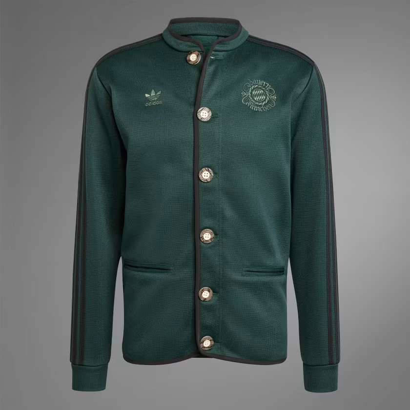 De Bayern München Oktoberfest collectie van adidas bevat dit jaar ook een speciaal adidas Originals Seasonal trainingsjack in het donkergroen en twee t-shirts in het beige en donkergroen. De spelers van Bayern München betreden het veld voorafgaande aan de wedstrijd tegen Bayer Leverkusen is een speciaal jack dat geïnspireerd is door een janker. Dit is een traditionele Beierse jas, die door mannen gedragen wordt tijdens het Oktoberfest.
