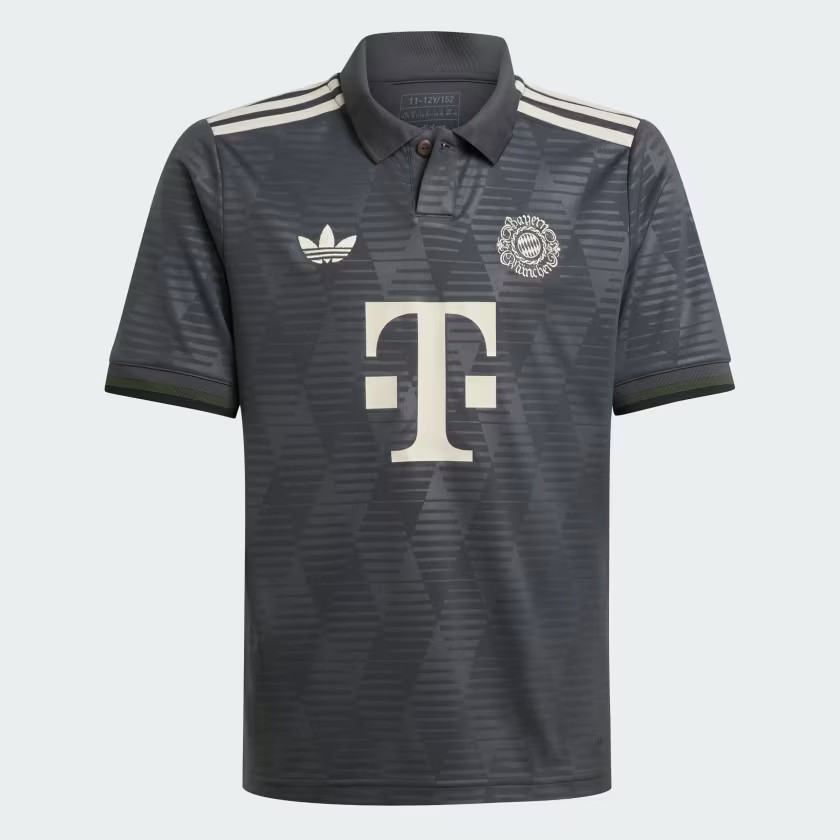 Het adidas Bayern München Oktoberfest voetbalshirt 2024 is dit jaar antraciet grijs en wordt gekenmerkt door het design van ruiten. In deze ruiten, die geïnspireerd zijn door de ruiten uit de vlag van de provincie Beieren, zijn flitsende strepen in twee tinten grijs verwerkt. Alle details op het shirt zijn beige. Op de borst van het shirt staan twee opvallende logo's. Het adidas logo op de rechterborst betreft namelijk het adidas Originals logo en het clublogo op de linkerborst betreft een speciaal FC Bayern München logo ter ere van het Oktoberfest. Rondom het clublogo bevinden zich namelijk versieringen die te maken hebben met het Duitse volksfeest. Deze versieringen zijn geïnspireerd door de borduursels op de traditionele lederhosen, die tijdens het feest gedragen worden. Het logo van Telekom staat op het midden van het shirt, de linkermouw is uitgerust met het logo van Allianz en op de schouders staan de adidas strepen in het beige.