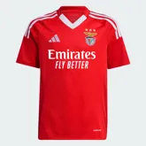 Het Benfica thuisshirt 2023-2024 is ook dit jaar weer volledig rood en wordt gekenmerkt door de toelopende V-hals. De hals bevat twee witte banen met in het midden een rode baan. Bovendien bevindt zich een rode driehoek in de V-hals. De band aan de onderkant van de mouwen heeft dezelfde kleurencombinatie als de V-hals. Het voetbalshirt heeft ook gouden details. De taping op de zijkanten van het tenue is namelijk goud. Deze loopt door naar de onderkant van de achterkant van het voetbalshirt en verwijst niet alleen naar het jubileum van de club, maar ook naar het kampioenschap. Een andere verwijzing naar het jubileum staat in de nek op de achterzijde van het tenue. Hier prijkt de tekst: 120 ANOS. Alle logo's en branding staan op de gebruikelijke plekken. De adidas trademark strepen op de schouders zijn wit en hetzelfde geldt voor het adidas logo op de rechterborst. Dit betreft het nieuwe adidas performance logo. Dit zogenaamde 3BAR logo staat vanaf dit seizoen op alle adidas voetbalshirts. De andere borst bevat het clublogo, inclusief drie gouden sterren. Deze sterren verwijzen naar de 38 landskampioenschappen. Op het midden van het tenue prijkt het Emirates Fly Better logo en de linkermouw bevat het logo van Betano. Het Benfica thuistenue 2023-2024 wordt compleet gemaakt door een wit voetbalbroekje met aan de zijkanten rode adidas strepen. De kousen zijn rood met witte adidas strepen aan de bovenkant.