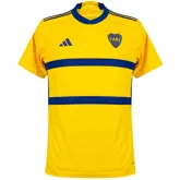 Het Boca Juniors uitshirt 2023-2024 heeft namelijk veel weg van het uitshirt van 1958. Destijds werd het voetbalshirt nog door de club zelf geproduceerd. Evenals 65 jaar geleden is het Boca Juniors uitshirt overwegend geel en wordt het tenue gekenmerkt door de twee brede horizontale donkerblauwe banen ter hoogte van de borst. Tussen deze banen is het logo van hoofdsponsor Betsson verwerkt. In tegenstelling tot het voetbalshirt van 1958 bevat het uitshirt dit jaar geen open hals met een kraag, maar een ronde hals. Wel heeft de hals dezelfde kleur als destijds: donkerblauw. De hals is ook uitgerust met een patroon van sterren, verwijzend naar de sterren uit het clublogo en dus ook naar de prijzenkast van de club uit Buenos Aires. De drie adidas strepen op de schouders en de band op de zijkanten van het voetbalshirt zijn ook donkerblauw. Deze band loopt door naar de onderkant van de achterkant, welke iets langer is. Het adidas logo prijkt op de rechterborst en de linkerborst is uitgerust met het clublogo. In de nek op de achterzijde van het tenue staat de bijnaam van de Argentijnse voetbalclub: XENEIZE. De achterzijde van het tenue bevat bovendien het logo van DIRECTV. Het voetbalbroekje van het uittenue is ook geel met aan de zijkanten donkerblauwe adidas strepen. Op het voetbalbroekje staan ook de logo’s van de club en adidas. De sokken zijn blauw met drie gele adidas strepen op de bovenkant. Op het midden van de voetbalsokken staan het adidas logo en de initialen van de club: CABJ.