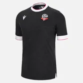 Het Bolton Wanderers uitshirt 2023-2024 is dit zwart met een design van diagonale, zilveren lijnen, die een patroon van ruiten vormen. Verder is het Bolton Wanderers uitgerust met een hoge, ronde hals. De hals is wit met een subtiele, rode lijn. Dit design komt ook weer terug in de band aan de onderkant van de mouwen. Alle (sponsor)logo's staan op dezelfde plek als op het thuisshirt. Hetzelfde geldt voor het label aan de binnenkant van de hals en de bijnaam van de club. Het uittenue wordt compleet gemaakt door een zwart voetbalbroekje. De kousen van het tenue zijn zwart met aan de bovenkant een witte band.