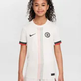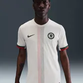 In het seizoen 1974-1975 was Umbro kledingsponsor van Chelsea en droeg de club een wit uitshirt met een brede rode baan aan de rechterkant van het midden en een brede groene baan op de linkerkant. Dit design komt weer terug in het Chelsea uitshirt 2025-2026. Het uitshirt is namelijk off white (Phantom) met aan de rechterkant van het midden dunne verticale rode lijnen en aan de linkerkant vier verticale groene lijnen. De dunne, parallelle lijnen geven het shirt een onderscheidende en minimalistische esthetiek. De kleurencombinatie komt ook weer terugin de band aan de onderkant van de mouwen. Deze is namelijk donkergroen (door Nike ''Galactic Jade'' genoemd) met een subtiele rode lijn. Ook de swoosh van Nike op de rechterborst is groen en het clublogo op de linkerborst bevat zowel groene als rode accenten. Evenals 50 jaar geleden is het shirt uitgerust met een ronde hals. Het Chelsea uittenue 2025-2026 wordt compleet gemaakt door een off white voetbalbroekje met aan weerszijden een diagonale rode en groene band. Op de shorts staan ook de logo's van de club en Nike. De sokken zijn donkergroen en bevatten aan de bovenkant een rode band. Op het midden van de sokken staan de initialen van de club en de swoosh van Nike.