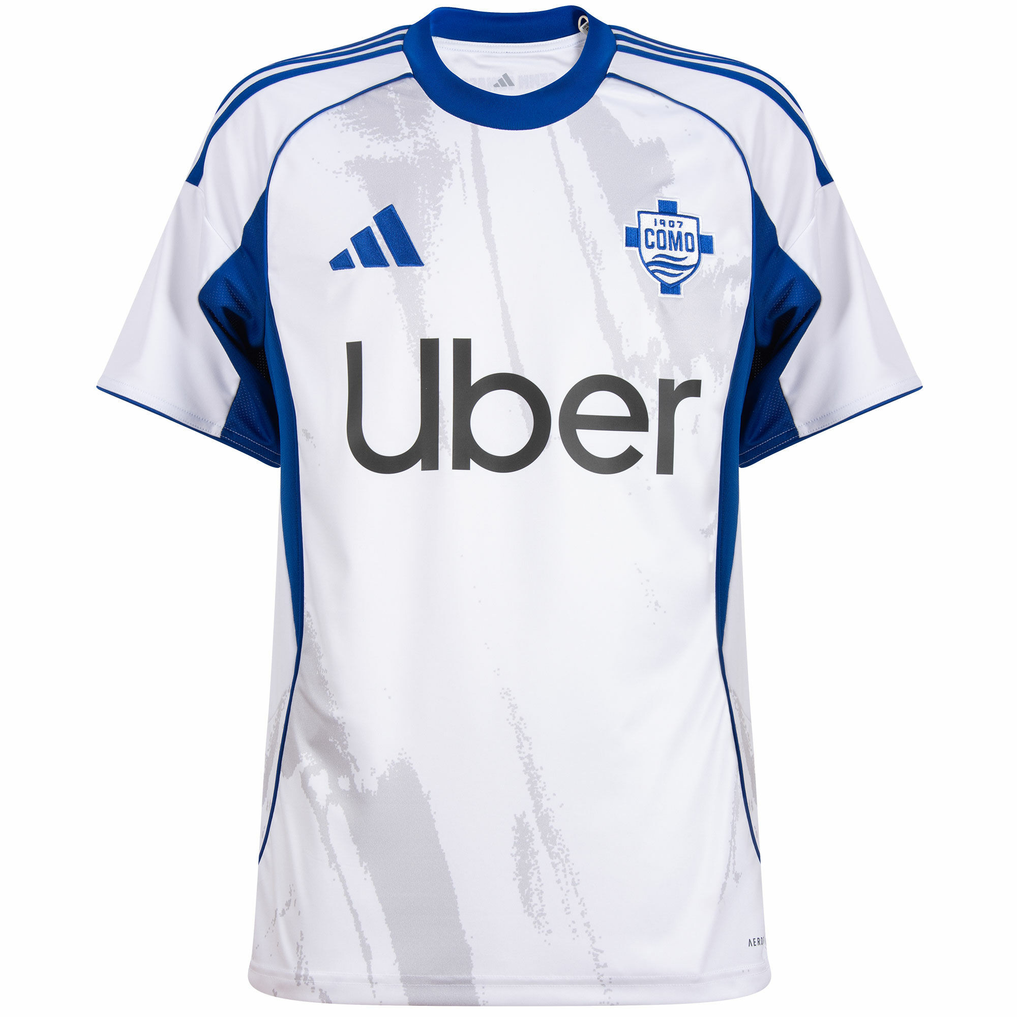 Het Como 1907 thuisshirt 2025-2026 Como 1907 is opnieuw ontworpen door kunstenaar Didit Hediprasetyo. Het design van het shirt vormt het vervolg op het verhaal dat begon met het iconische shirt van 2022-2023, een visueel eerbetoon aan het majestueuze Comomeer, verbeeld door de expressieve penseelstreken van kunstenares Golnaz Jebelli. De diepe, symbolische blauwtonen en subtiele artistieke accenten brengen de schoonheid en ziel van Como naar het veld van het Stadio Giuseppe Sinigaglia. Het thuisshirt bevat bovendien zilveren accenten. Deze kleur komt terug in alle logo’s. De rechterborst bevat het logo van adidas, de linkerborst de badge van de club en op het midden staat sponsor UBER. Ook de adidas strepen op de shcouders en de ronde hals zijn zilver. In de nek op de achterkant staat het motto van de supporters: ''Semm Cumasch'' (Wij zijn Como). Op de achterkant prijkt bovendien het logo van subsponsor Neuberger Berman. Het Como 1907 thuistenue 2025-2026 wordt compleet gemaakt door een wit short met aan weerszijden blauwe adidas strepen. De sokken van het thuistenue zijn ook blauw met aan de bovenkant witte adidas strepen. Op het midden van de sokken staat de naam van de stad (COMO) en het adidas logo.