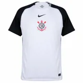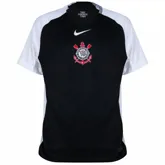 Het Corinthians uitshirt 2025-2026 heeft hetzelfde kleurenschema als het thuisshirt, maar dan omgekeerd. De body van het uitshirt is namelijk zwart en de zijkanten en de mouwen van het shirt zijn wit. Ook op dit shirt staan de logo's van Nike en de Braziliaanse club centraal onder elkaar. De ronde hals heeft aan de zijkanten dezelfde zwarte en witte strepen en de binnenkant van de hals bevat dezelfde tekst als het thuisshirt. Dit tenue wordt gecompleteerd door een wit voetbalbroekje en zwarte sokken met contrasterende accenten.