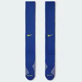 Het FC Barcelona thuistenue 2023-2024 wordt compleet gemaakt door een blauw voetbalbroekje, waarop ook de logo's van Nike en de club staan. De kousen zijn rood en bevatten een design van verticale strepen in het blauw.