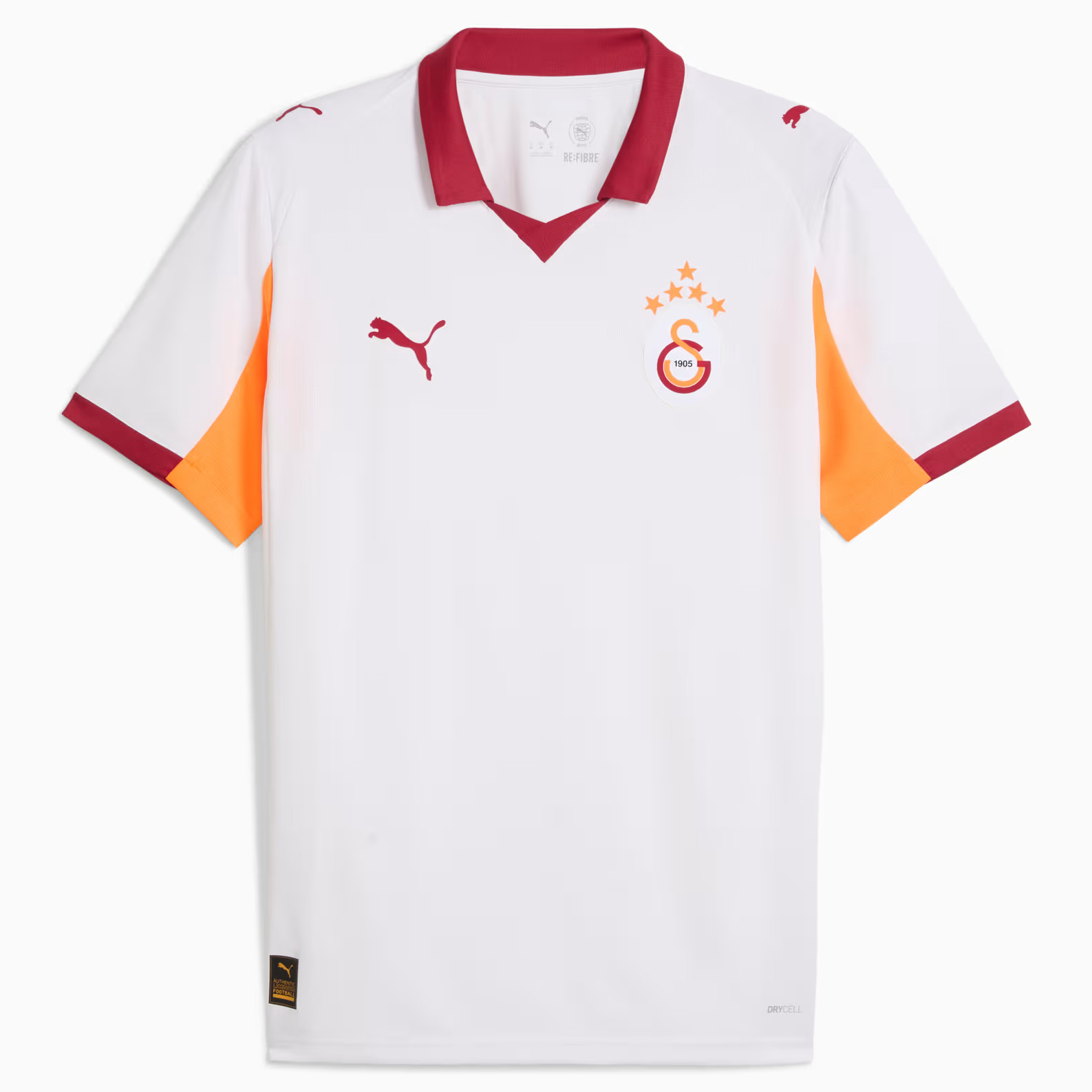 Het Galatasaray uitshirt 2025-2026 doet denken aan het Galatasaray uitshirt van het seizoen 1999-2000, het jaar waarin Galatasaray de UEFA Cup won. In de finale versloeg Galatasaray Arsenal na strafschoppen. Bij Galatasaray maakten sterren als Hagi, Sukur, Popesku, Korkmaz en Taffarel de dienst uit. In dit seizoen was adidas overigens nog de kledingsponsor. Het Galatasaray uitshirt is wit en bevat details in de clubkleuren. Deze kleuren komen namelijk terug in de panels op de mouwen en de band aan de onderkant van de mouwen. De polokraag van het uitshirt is ook rood. Alle logo’s staan op dezelfde plek als op het thuisshirt. Het uittenue wordt compleet gemaakt door een wit shirt of rood voetbalbroekje met contrasterende accenten. De sokken zijn wit en bevatten dezelfde accenten als de sokken van het thuistenue.