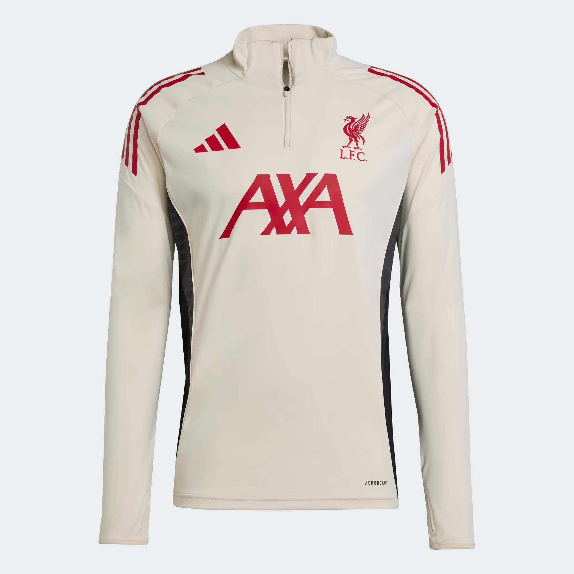De training sweater van het Liverpool FC trainingspak is dit jaar een vale tint groen, welke door Nike ‘’Bicoastal’’ genoemd wordt. Groen lijkt dé kleur van dit seizoen te zijn voor Nike. Het Paris Saint trainingspak 2024-2025 is ook groen, maar dan in een andere tint. Het Nike Strike template komt vooral tot uiting in de golf op de mouwen, welke rood is. Alle logo’s op de training sweater zijn beige (Light Orewood Brown). De rechterborst bevat de swoosh van Nike, de linkerborst het clublogo en op het midden van de training sweater staat het logo van sponsor AXA. De training sweater heeft ook dit jaar weer de bekende functionele kenmerken. De sweater is uitgerust met een semi hoge hals met een rits tot de borst. Wanneer je de rits omhoog doet, kun je deze verbergen. De mouwen zijn aan de onderkant weer uitgerust met duimgaten, voor een nog strakkere pasvorm. Het trainingspak sluit weer naadloos aan op het lichaam. De stof van zowel de training sweater als de trainingsbroek betreft een combinatie van polyester (91%) en elastaan (9%). Dit betreft een elastische stof.
