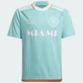 De kleuren van het Inter Miami FC 3e shirt 2024-2025 doen denken aan de outfit van de Miami Dolphins, de American Football Club van Miami, maar is vooral een eerbetoon aan het Miami van de jaren ‘80. Het voetbalshirt is evenals het tenue van de NFL club turquoise en bevat een design van dunne verticale banen, die het shirt een retro look geven. Bovendien bevat het voetbalshirt witte en oranje accenten, die ook een verwijzing zijn naar de Miami Dolphins shirts. De ronde hals is wit met een dunne oranje lijn en dit design komt ook terug in de band aan de onderkant van de mouwen en de taping op de zijkanten.. Alle logo’s op het alternatieve uitshirt zijn ook wit. De rechterborst bevat het logo van adidas en de linkerborst het clublogo. Dit betreft een monochroom logo. Het logo heeft namelijk niet de gebruikelijke kleuren, maar is in stijl van de kleuren van het voetbalshirt: turquoise/wit. Op het midden van het shirt prijkt de naam van de stad in een iconisch Miami Vice lettertype. Op de achterkant het logo van sponsor RoyalCaribbean International. In de nek op de achterkant van het voetbalshirt bevindt zich een speciaal MLS retro logo. Het tenue wordt compleet gemaakt door een turquoise voetbalbroekje met aan de zijkanten witte adidas strepen. Op de onderkant van de pijpen bevindt zich een oranje band. De sokken hebben dezelfde kleurencombinatie als het voetbalshirt en het broekje.