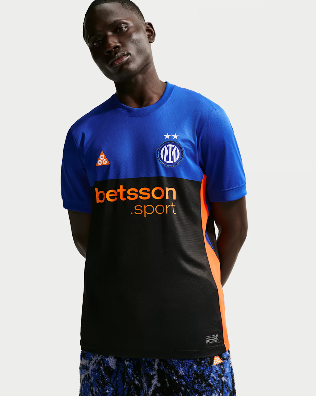 Het Nike ACG x Inter Milan 4e shirt 2025-2026 is de eyecatcher van deze collectie. Dit tenue valt vooral op door de kleurencombinatie. Het shirt is aan de bovenkant blauw en vanaf de borst tot de onderkant zwart. Daarnaast bevat het shirt fel oranje accenten. Deze kleur komt terug in de band op de zijkanten, in het Nike ACG logo op de rechterborst en in het logo van sponsor Betsson Sport. De kleurencombinatie onderstreept de brug tussen voetbal en avontuur, een kernwaarde van Nike ACG. Qua design ziet het shirt er vrij eenvoudig uit, maar de details vertellen het avontuurlijke verhaal. De badge van Inter Milan heeft een speciale textuur, geïnspireerd door een slangenhuid. Dit verwijst natuurlijk naar de iconische ‘’biscione’’ uit het logo van de club. Het Nike logo op de rechterborst betreft het Nike ACG logo, welke gekenmerkt door een driehoek met daarin de letters ACG. Aan de binnenkant van de kraag staat de tekst “Internazionale. All Conditions Gear. Milano”, waarmee clubtrots en outdoormentaliteit samenkomen in één statement!