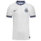 Het Inter Milan uitshirt is dit jaar geïnspireerd door de architectuur in de stad en de status van de stad als modestad. In het voetbalshirt zijn de kleuren van de iconische gebouwen in de stad gemengd met de verfijnde elegantie van de haute couture in Milaan en natuurlijk een snufje DNA van de club. Het uitshirt is overwegend wit, een kleur die al sinds de jaren ‘70 veelvuldig als kleur van het uitshirt gebruikt is en symbool staat voor stijl en elegantie, aangevuld met grijsblauwe en zwarte accenten. De grijze accenten zijn geïnspireerd door de gotische en industriële architectuur van Milaan, welke door de jaren heen ook veelvuldig is gebruikt als inspiratiebron van de nieuwe modecollecties in Milaan. Bovendien is de tint een herinterpretatie van de traditionele kleur blauw van Inter Milan. Deze grijsblauwe tint komt allereerst terug in de kraag. Dit betreft de nieuwe kraag van Nike, welke een combinatie is van een v-hals en opstaande kraag. Bovendien komt de kleur terug in de band aan de onderkant van de mouwen en de taping op de zijkanten van het shirt. Deze bevatten allebei ook een dunne zwarte lijn, verwijzend naar de andere clubkleur van Inter Milan.