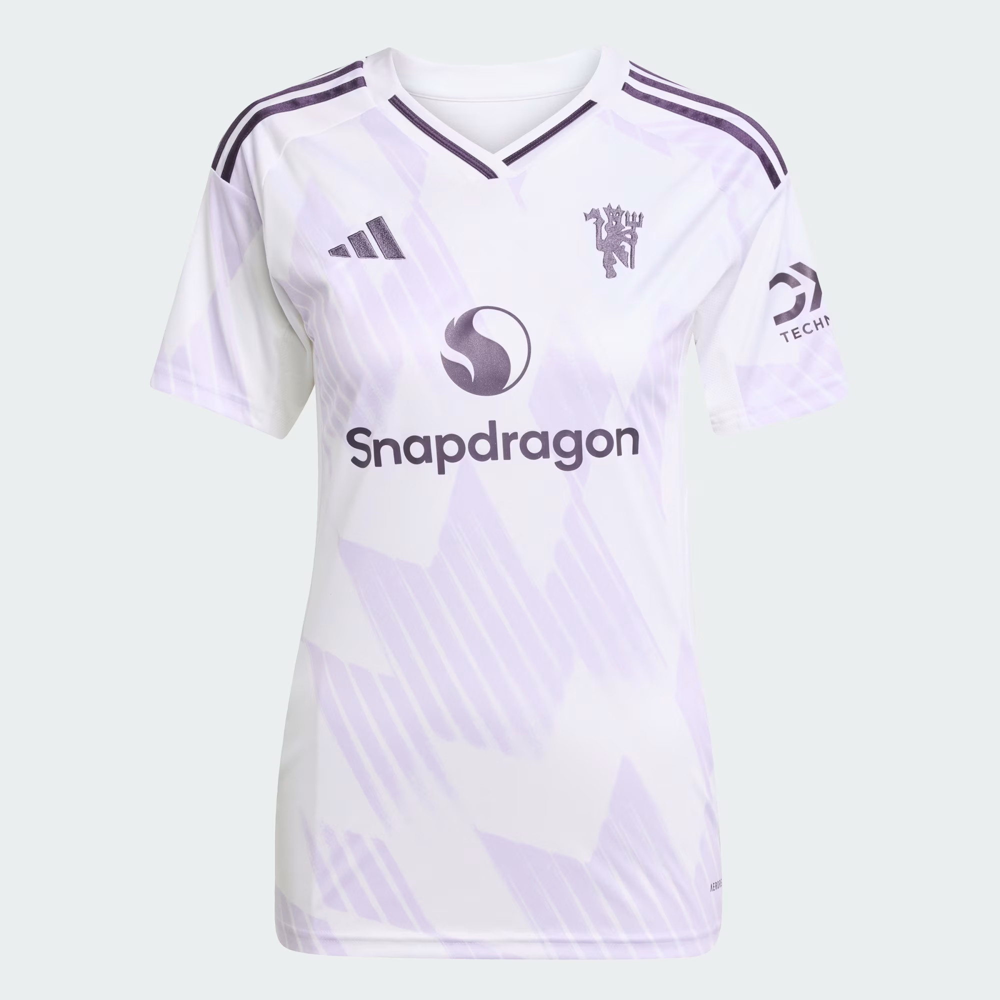 De zilveren accenten op het Manchester United uitshirt 2024-2025 zorgen voor het nodige contrast en wat extra glans! Dit is namelijk de kleur van alle logo’s op het tenue en de adidas trademark strepen op de schouders. De logo’s staan op de gebruikelijke plekken. De rechterborst bevat het adidas logo, de linkerborst het clublogo en op het midden van het shirt staat de nieuwe shirtsponsor: Snapdragon. De linkermouw is uitgerust met het logo van DXC Technology. Uiteraard heeft ook dit shirt weer een klein detail in de nek op de achterkant. Hier prijkt namelijk de duivel uit het clublogo in het zilver.