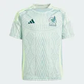 De basiskleur van het adidas Mexico uitshirt 2024-2025 is lichtgroen en opnieuw bevat het voetbalshirt een oogverblindende all-over print, geïnspireerd door het culturele erfgoed en de toekomst van Mexico. Het patroon wordt gekenmerkt door verschillende geometrische vormen, gebaseerd op oude Azteekse en Maya beschavingen. In de print zien we bijvoorbeeld architecturale pareltjes van de Azteken, waaronder de huid van de Quetzalcoatl. Met dit patroon wordt er door adidas een eigentijdse twist toegevoegd aan de culturele wortels van het land! Qua template heeft het Mexico uitshirt alle kenmerken van het nieuwe adidas TIRO24 template. Dit template is geïnspireerd door het adidas Teamgeist template van 2006 en wordt gekenmerkt door de golven op de zijkanten van het tenue. De golven op het Mexico uitshirt zijn fel groen. Dit is ook de kleur van de adidas trademark strepen op de schouders van het voetbalshirt. De rechterborst bevat het adidas performance logo in het zwart en de andere borst het logo van de Mexicaanse voetbalbond, de Federación Mexicana de Fútbol Asociación (Femexfut). Een speciaal detail bevindt zich nog op de achterzijde van het tenue. Hier staat weer een graphic van de zogenaamde Quetzalcoatl (Gevederde slang).