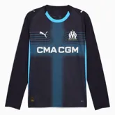 Op de borst prijkt het klassieke clublogo van Olympique de Marseille, geflankeerd door het PUMA-logo, beide subtiel verwerkt in het ontwerp. Ook de sponsorlogo’s zijn netjes geïntegreerd in het design, zonder het esthetische karakter te verstoren.