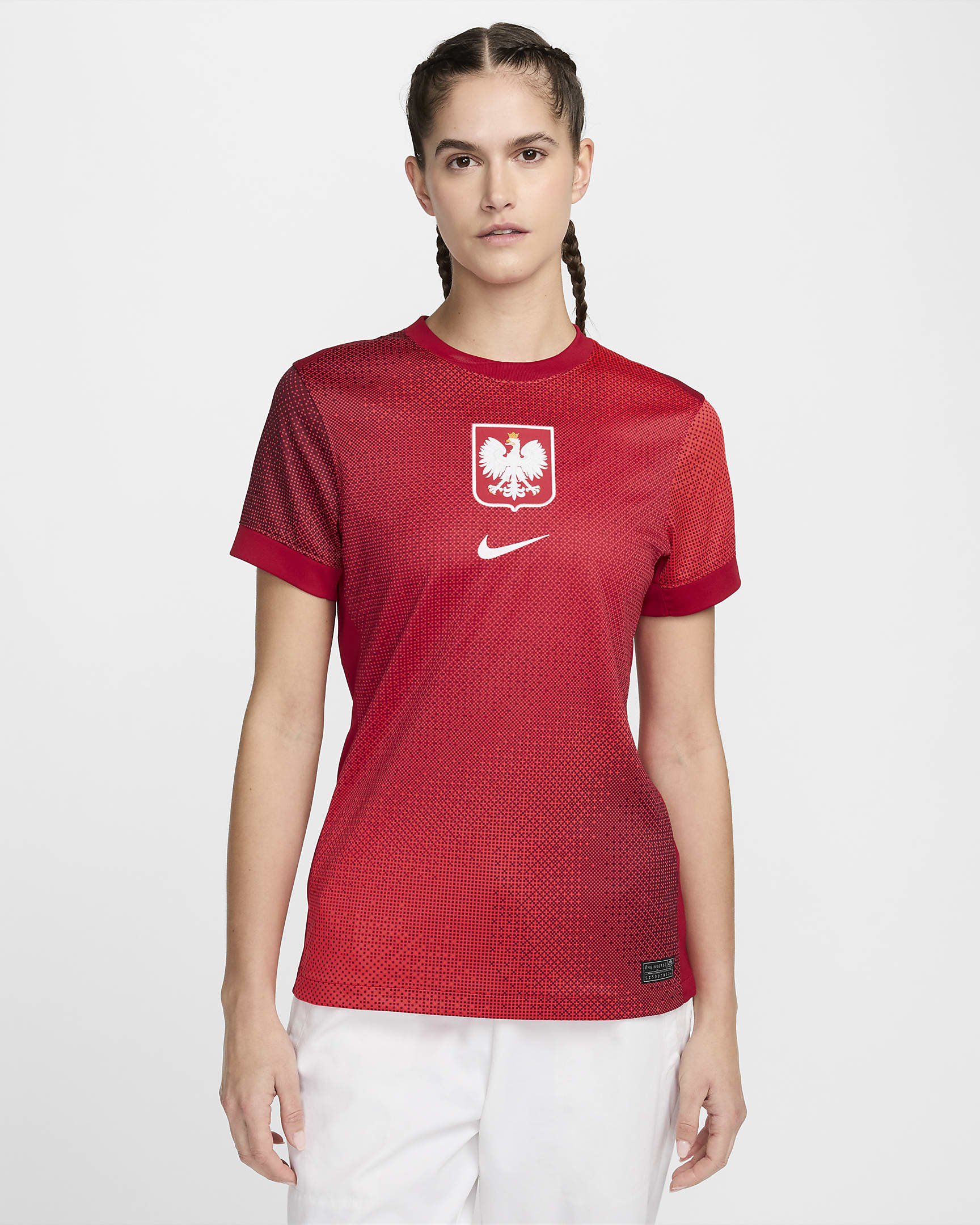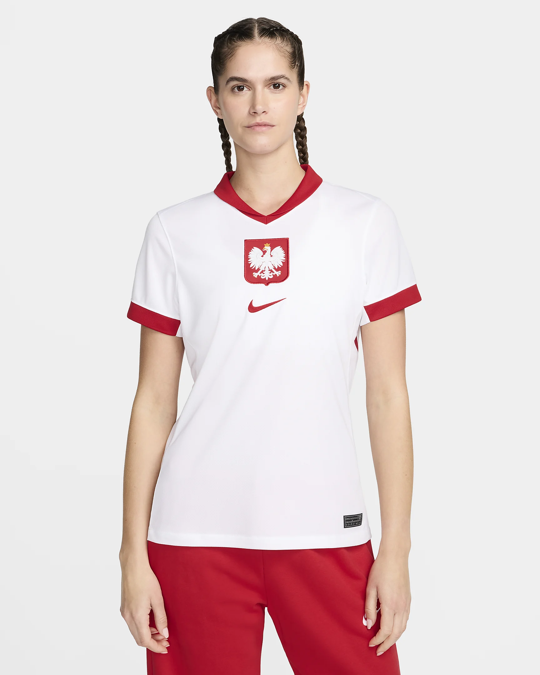 Het Polen thuisshirt 2022-2023 is dit jaar weer volledig wit en bevat op de mouwen en de bovenkant van het voetbalshirt een all-over graphic print, die verwijst naar de vleugels en het nest van de adelaar uit het logo van de Poolse voetbalbond en het landswapen. Dit is een eerbetoon aan het eeuwenoude symbool van Poolse soevereiniteit en eenheid. Deze print is zilver/wit. Het tenue bevat verder alle kenmerken van het nieuwe Nike template. Het Polen thuisshirt bevat een ronde hals met daaronder een ronding. Boven deze ronding bevindt zich de graphic print en onder de ronding is het Polen thuisshirt wit. Op de rechterborst prijkt de swoosh van Nike in het rood en de linkerborst bevat het logo van de Poolse voetbalbond, de Polski Związek Piłki Nożnej (PZPN). Dit betreft hetzelfde logo als het landswapen van Polen. De binnenkant van de hals bevat het moderne logo van de Poolse voetbalbond. Het Polen thuistenue wordt gecompleteerd door een wit of rood voetbalbroekje, welke ook de logo's van de Poolse voetbalbond en Nike bevat. De kousen zijn volledig wit met een rode swoosh.