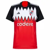 Het nieuwe uitshirt is geen remake van het voetbalshirt van dertig jaar geleden, maar vormt alleen de inspiratie. Waar het voetbalshirt in de periode 1993-1996 een design van zwarte en witte ruiten aan de bovenkant had, is dit op het nieuwe voetbalshirt vertaald naar ene zwart en wit vlak, die gescheiden worden door zigzag lijnen in het zwart. Het witte vlak bevat dan ook het design van ruiten. De onderkant van het nieuwe uittenue is, evenals dertig jaar geleden volledig rood. Het uitshirt heeft een zwarte v-hals en had in de periode 1993-1996 een v-hals met een rode, witte en zwarte lijn. Ook het adidas logo op de rechterborst is anders. Dertig jaar geleden betrof dit nog het woordmerk van het Duitse sportmerk en nu betreft dit het nieuwe adidas performance logo, welke gekenmerkt wordt door de drie diagonale blokken. Op het uitshirt van 1993-1996 stond het logo van Quilmes en op dit uitshirt het logo van de huidige hoofdsponsor Quilmes. De achterzijde is uitgerust met het logo van subsponsor DIRECTV. In de nek op de achterzijde van het tenue prijkt de bijnaam van de club: Grandeza. Het River Plate uittenue 2023-2024 wordt compleet gemaakt door een rood voetbalbroekje met aan weerszijden witte adidas strepen en aan de onderkant een zwarte band. De sokken hebben hetzelfde design als het voetbalshirt. De bovenkant van de sokken zijn zwart met witte adidas strepen. Het middelste gedeelte is wit en het onderste gedeelte is rood. De kleuren worden gescheiden door zigzag lijnen. eHet