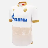Het Rode Ster Belgrado 3e shirt 2024-2025 is wit en bevat aan de onderkant een speciale print van een historische wedstrijd van de club tijdens de jaren ’50. Dit voetbalshirt is bovendien uitgerust met gouden accenten. De diagonale hals is goud en hetzelfde geldt voor de band aan de onderkant van de mouwen en de logo’s van Macron en de club. Hoofdsponsor Gazprom staat in het blauw op het midden van het alternatieve uitshirt en ook dit shirt bevat dezelfde details als het thuisshirt en uitshirt. Het derde tenue wordt compleet gemaakt door een wit short en witte sokken met gouden accenten.