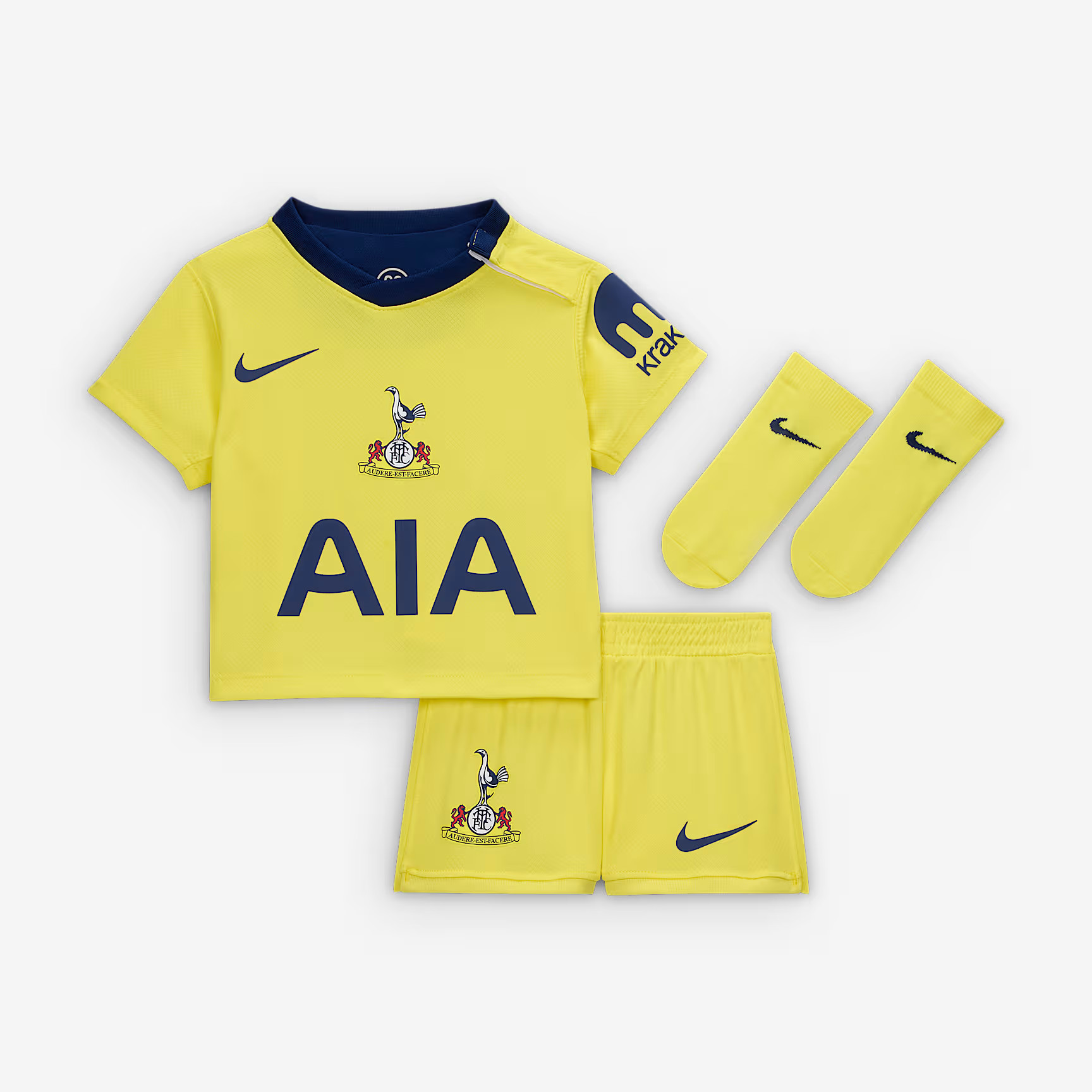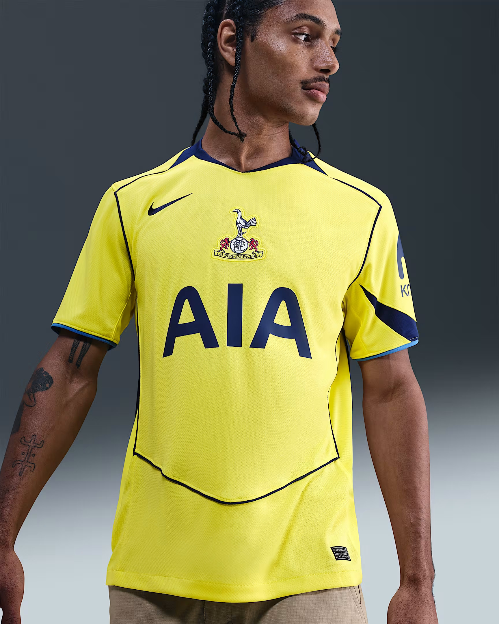 Sinds Nike in het seizoen 2017-2018 kledingsponsor werd van Tottenham Hotspur, heeft de club dit iconische template niet eerder gedragen. Daar komt dit jaar verandering in. Voor het derde shirt grijpt Nike terug naar de derde tenues uit de midden jaren 2000 en vermengt die stijl met het karakteristieke Total90-ontwerp. Destijds was Kappa nog de leverancier van de Spurs-shirts, maar de retro-invloeden zijn nu duidelijk aanwezig. Het resultaat is een tenue dat doet denken aan de shirts van clublegendes als Defoe, Keane, King, Carrick, Berbatov en Davids, én aan het template van Nike dat dat decennium zijn stempel op het voetbal drukte. De kleuren van het Tottenham Hotspur 3e shirt doen bovendien denken aan het Tottenham Hotspur 3e shirt 2020-2021, welke ook door Nike werd geproduceerd!
