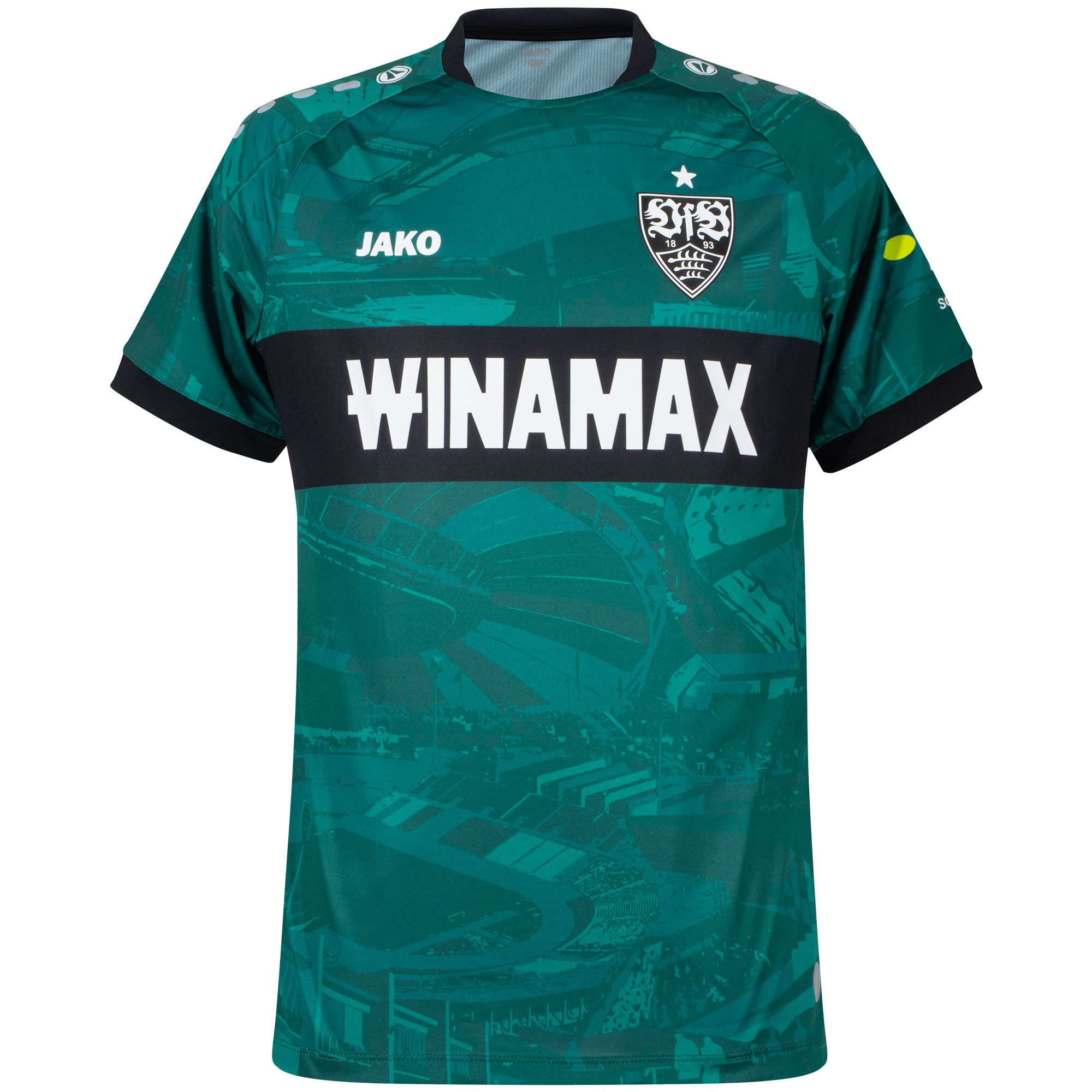Het VFB Stuttgart 3e voetbalshirt 2023-2024 is een eerbetoon aan de thuishaven van de club, de MHP Arena (de voormalige Mercedes Benz Arena). Het voetbalshirt is groen en bevat een all-over print van het stadion van de club. Verder heeft het voetbalshirt zwarte accenten. De opstaande kraag is zwart en hetzelfde geldt voor de band aan de onderkant van de mouwen. Ook dit voetbalshirt bevat de iconische ''Stuttgart'' baan over de borst. Dit horizontale vlak is zwart en bevat in het wit het logo van hoofdsponsor WINAMAX. Het logo van Stuttgart op de linkerborst betreft een monochroom logo. Dit logo heeft namelijk niet de gebruikelijke kleuren, maar is in stijl van de kleuren van het voetbalshirt, in dit geval zwart/wit. Het alternatieve uittenue wordt gecompleteerd door een zwart voetbalbroekje en zwarte sokken met groene accenten.