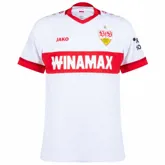 Het VfB Stuttgart thuisshirt 2024-2025 is geïnspireerd door het thuisshirt van veertig jaar geleden, namelijk het shirt van 1984. In dit voetbalshirt werd Stuttgart kampioen van Duitsland. Destijds was adidas nog de kledingsponsor van ‘’Die Roten’’ en stond Dinkel Acker als sponsor op het midden van de tenues. Het shirt heeft weer het kenmerkende design. Het VfB Stuttgart thuisshirt is overwegend wit en wordt gekenmerkt door de brede rode band over de borst. In deze band staat het logo van hoofdsponsor WINAMAX. Ook de v-hals en de band aan de onderkant van de mouwen zijn rood. Beide delen bevatten twee tinten rood. Alle logo’s staan op de gebruikelijke plekken. De rechterborst bevat het logo van JAKO en de trademark tekens van het Duitse sportmerk staan op de schouders, de linkerborst bevat het clublogo en op de linkermouw staat het logo van Hep. Het tenue heeft ook nog verschillende details. De linker onderkant van het shirt is uitgerust met een zilveren badge met de tekst: ‘’We are team’’. In de nek op de achterkant staan de initialen van de club: VFB. De binnenkant van de hals is voorzien van een hartje in de clubkleuren. Het VFB Stuttgart thuistenue wordt compleet gemaakt door een wit short met op de linkerpijp een rode band. De sokken zijn wit met op het midden een rood vlak met daarin de initialen van de club.