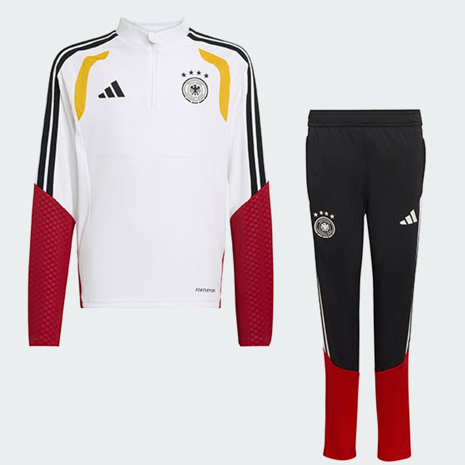 Koop hier het adidas Duitsland voetbalshirt van Florian Wirtz voor kinderen en volwassenen. Dit voetbalshirt kan je bestellen in de maten 128, 140, 152, 164, 176, XS, S, M, L, XL en XXL. In dit voetbalshirt speelt de sterspeler met Duitsland de Euro 2024 wedstrijden en andere interlands gedurende het seizoen 2024-2025. De speler heeft bij Duitsland nummer 17 als rugnummer. Dit nummer staat zowel op de borst als op de achterkant van het voetbalshirt. Dit is dezelfde officiële en originele bedrukking als de spelers van het nationale elftal op het tenue dragen. Klik direct op de buttons om het Duitsland voetbalshirt met de officiële bedrukking van deze speler te bestellen. Hier bestel je zowel het nieuwste thuisshirt als uitshirt!