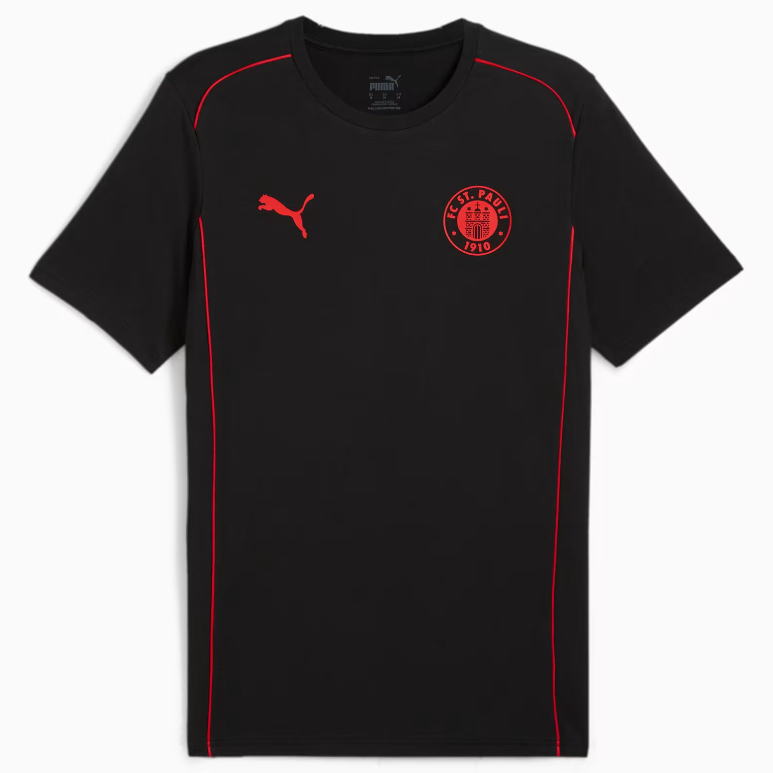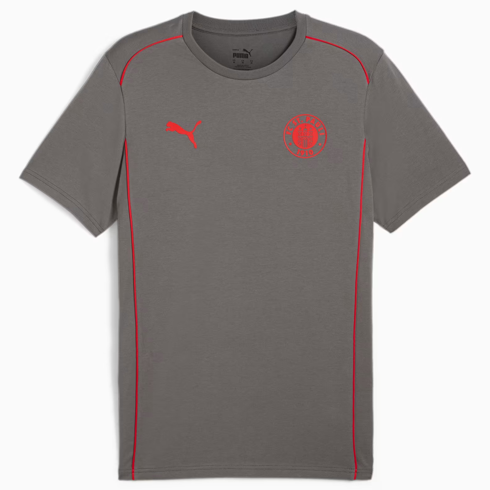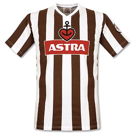 Bestel het FC Sankt Pauli voetbalshirt altijd via voetbalshirts.com! In deze tenues speelt St. Pauli de (2.)Bundesliga en DFB Pokal wedstrijden dit seizoen. FC Sankt Pauli is op 15 mei 1910 opgericht en speelt de thuiswedstrijden in het Millerntor Stadium. Sinds de oprichting van de club is het voetbalshirt bruin en wordt het tenue gecompleteerd door een wit voetbalbroekje en bruine sokken. Tussen de jaren ’20 en de jaren ’30 introduceerde de club een wit voetbalshirt met een bruin voetbalbroekje en bruine sokken. Dit zou tot de jaren ’90 de traditionele look van het FC Sankt Pauli tenue zijn. Het bruine voetbalshirt werd vaak als uitshirt gebruikt. In de jaren ’90 introduceerden het sportmerk Reusch een FC Sankt Pauli voetbalshirt met verticale en horizontale bruine en witte strepen. Sindsdien heeft bruin de overhand in het thuisshirt. Het FC Sankt Pauli uitshirt is veelal wit. Tot 1975 verzorgde de Duitse voetbalclub de voetbalshirts zelf en in dit jaar werd Hummel de eerste kledingsponsor van ‘’Kiezkicker’’. Daarna volgden tal van andere merken zoals Adidas, Puma, Diadora, Patrick, Reusch, Kappa, Stanno en Under Armour. Er zijn ook twee periodes geweest waarin de club met een eigen label de tenues produceerden. Dit was in de periode 2005-2014 onder het label van Do You Football en in de periode 2021-2024 onder het label van Di!Y. In 1975 stond er voor het eerst een shirtsponsor op de voetbalshirts van FC Sankt Pauli. Dit betrof het logo van Lüder Bauring. Één van de cultshirts van Sankt Pauli betreft nog steeds het voetbalshirt met het logo van Jack Daniels, dat van 1997 tot 2000 hoofdsponsor was. Congstar is momenteel de shirtsponsor. Check hier het overzicht van beschikbare FC Sankt Pauli producten, historische voetbalshirts en de geschiedenis van het voetbalshirt en de sponsors!