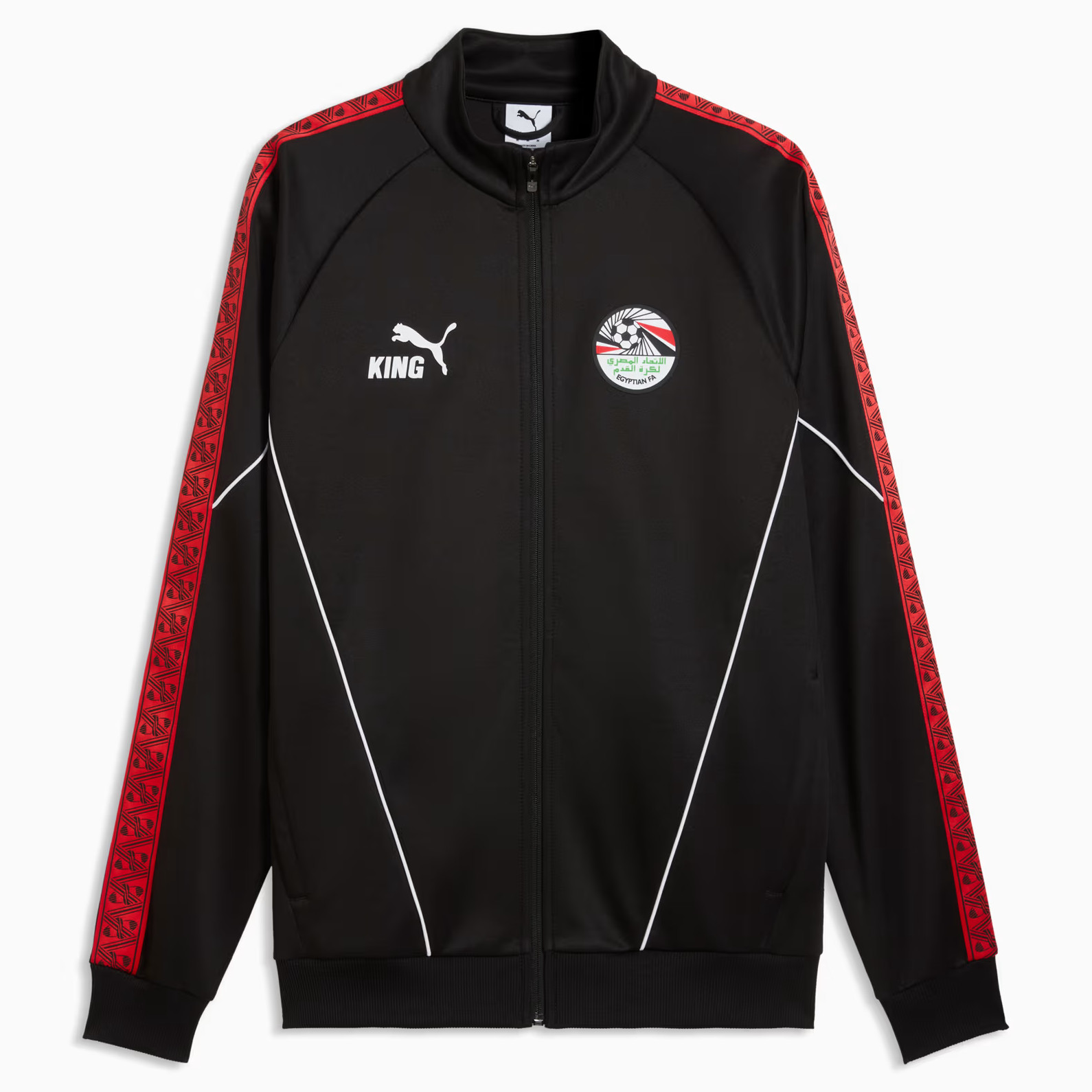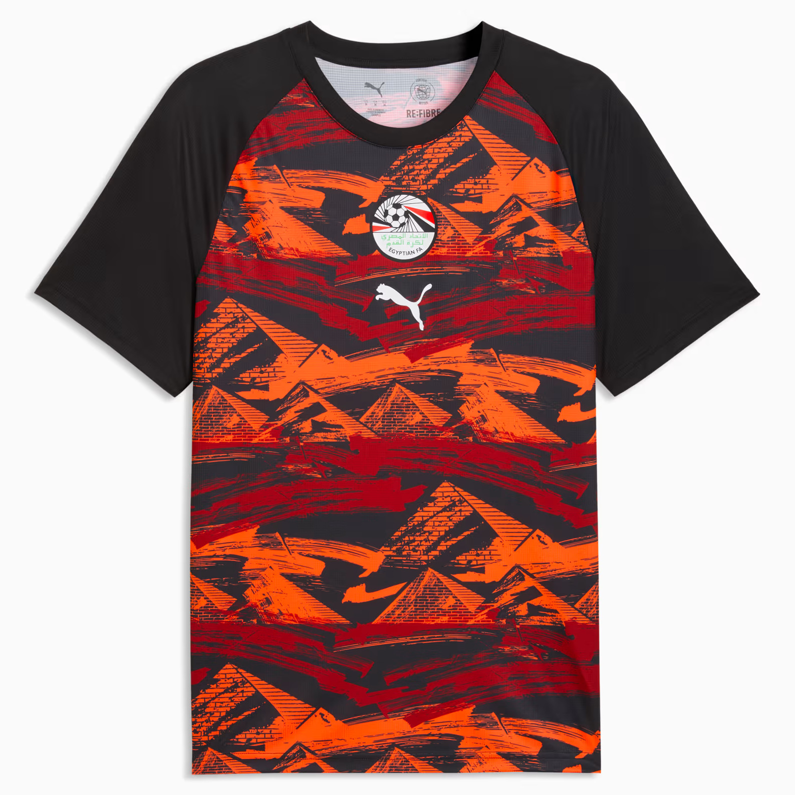 Bestel het Egypte voetbalshirt altijd via voetbalshirts.com! In deze tenues speelt het Egyptische voetbalelftal de kwalificatie- en oefenwedstrijden ter voorbereiding op een WK of de Afrika Cup (of Nations), alsook de wedstrijden tijdens het wereldkampioenschap voetbal en tijdens het toernooi om het Afrikaans kampioenschap. Het Egyptische voetbalelftal speelde de eerste interland in 1920. Het voetbalshirt van het Egyptisch voetbalelftal is altijd overwegend rood en dus in stijl van één van de kleuren van de nationale vlag. Alleen in 1934 had het nationale team kortstondig een groen thuisshirt. Deze kleur wordt nu vaak gebruikt voor het uitshirt of 3e shirt van Egypte. Het Egypte thuistenue wordt compleet gemaakt door een zwart voetbalbroekje en zwarte of rode sokken. Tot mid jaren ’70 verzorgde de Egyptische voetbalbond de tenues zelf en in 1976 was adidas de eerste kledingsponsor. Daarna was het vooral stuivertje wisselen tussen de twee grote Duitse sportmerken (Adidas en Puma), al waren ook Umbro en Venecia even verantwoordelijk voor het design en de productie van de Egypte voetbalshirts. De laatste decennia bevatten de Egypte tenues standaard een verwijzing naar cultuur, historie en architectuur van het land. Boven het logo van de Egyptische voetbalbond (EFA) staan zeven sterren, die verwijzen naar de gewonnen Afrika Cups in 1957, 1959, 1986, 1998, 2006, 2008 en 2010. Check hier het overzicht van beschikbare Egypte voetbalshirts, alsook de historie van het tenue, retro voetbalshirts en andere producten om ‘’The Pharaohs’’ mee aan te moedigen.