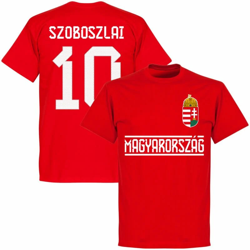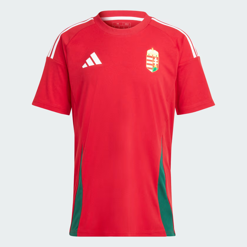 Bestel het Hongarije voetbalshirt altijd via voetbalshirts.com! In deze voetbalshirts speelt het Hongaarse voetbalelftal de kwalificatie- en oefenwedstrijden ter voorbereiding op het EK of WK, alsook de interlands tijdens het WK voetbal of het Europees kampioenschap voetbal. Hongarije speelde de eerste interland tijdens de Olympische Spelen van 1912 in Stockholm. Deze wedstrijd verloor Hongarije met 7-0 van Engeland. Sinds de eerste interland speelt Hongarije in een overwegend rood voetbalshirt, gecompleteerd door een wit voetbalbroekje en groene sokken. Dit zijn de kleuren van de Hongaarse vlag. Het Hongarije uitshirt is vaak wit met details in de andere kleuren van de nationale vlag (rood en groen). Tegenwoordig staan niet alleen de logo’s van de kledingsponsor en de Hongaarse voetbalbond op de voetbalshirts, maar ook het wapen van het land. Bovendien is de naam van het land vaak op het tenue verwerkt: "Magyarország". Tot 1976 verzorgde de nationale voetbalbond de tenues zelf en in 1976 was adidas de eerste kledingsponsor. Daarna werd het stokje overgenomen door Umbro (1990-1994) en sinds 1994 is adidas weer de kledingsponsor. Check hier de historie van het Hongarije voetbalshirt, maar ook beschikbare producten, zoals het thuisshirt, uitshirt, retro shirts, goedkope t-shirts en hoodies!