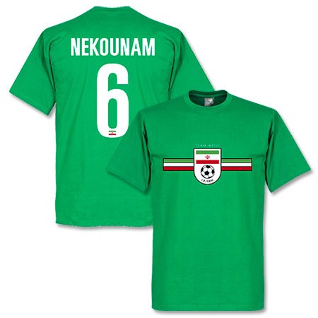 Bestel hier het Iran Karimi fan t-shirt van het merk Retake. Dit shirt heeft dezelfde stijl als het voetbalshirt van het Iranees voetbalelftal. Het t-shirt is groen en bevat op het midden van het shirt drie banen in de kleuren van de Iranese vlag: groen/wit/rood. Op het midden van het shirt bevindt zich ook een vintage embleem van het logo van de voetbalbond van het land. De achterkant van het shirt is uitgerust met de naam en het nummer van sterspeler KARIMI (8). Deze print is geheel in stijl van de officiële bedrukking van het land. Dit t-shirt kan je vanaf nu bestellen in de maten S, M, L, XL en XXL. Klik direct op de buttons om het t-shirt te kopen! Perfect shirt om het elftal mee aan te moedigen tijdens een WK of Azië Cup!