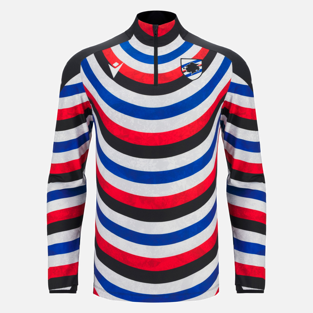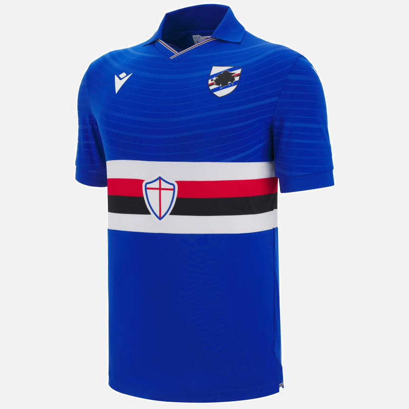 Bestel het UC Sampdoria voetbalshirt altijd via voetbalshirts.com! In deze voetbalshirt speelt UC Sampdoria de Serie A/B en Coppa Italia wedstrijden dit seizoen. De thuiswedstrijden worden gespeeld in het Stadio Luigi Ferraris. Unione Calcio Sampdoria is op 1 augustus 1946 ontstaan uit een fusie van Sampierdarenese en Andrea Doria. Sampierdarenese droeg een rood/wit voetbalshirt en Andrea Doria een blauw/wit voetbalshirt. Deze kleuren zijn gecombineerd in de UC Sampdoria voetbalshirt. De club uit Genoa draagt namelijk een blauw voetbalshirt met op het midden horizontale banen in het wit, rood en zwart. In het midden van deze banen is het St. George kruis verwerkt. Dit is het stadswapen van Genoa. De bijnaam van Sampdoria is ‘’Blucerchiati’’ (de blauw-geringden), een verwijzing naar de kleurencombinatie van het tenue. Het clublogo van de Italiaanse voetbalclub wordt gekenmerkt door een afbeelding van een zwart silhouet, dat symbool staat voor het gezicht van een gestileerde Ligurische visser met een baard, pet, pijp en zijn haar in de wind; de Baciccia. Het Sampdoria uitshirt is vaak wit met details in de clubkleuren van Sampdoria. In 1978 was Puma de eerste kledingsponsor van de Italiaanse voetbalclub en daarna volgden nog een handvol andere sportmerken. Sampdoria heeft vaak langjarige samenwerkingen met deze sportmerken. Pholola was in 1982 de eerste shirtsponsor. De voetbalclub heeft ook perioden gehad waarin het geen sponsor op het tenue had. Check hier het overzicht van actuele Sampdoria voetbalshirts, alsook de historie van het tenue en de sponsors.