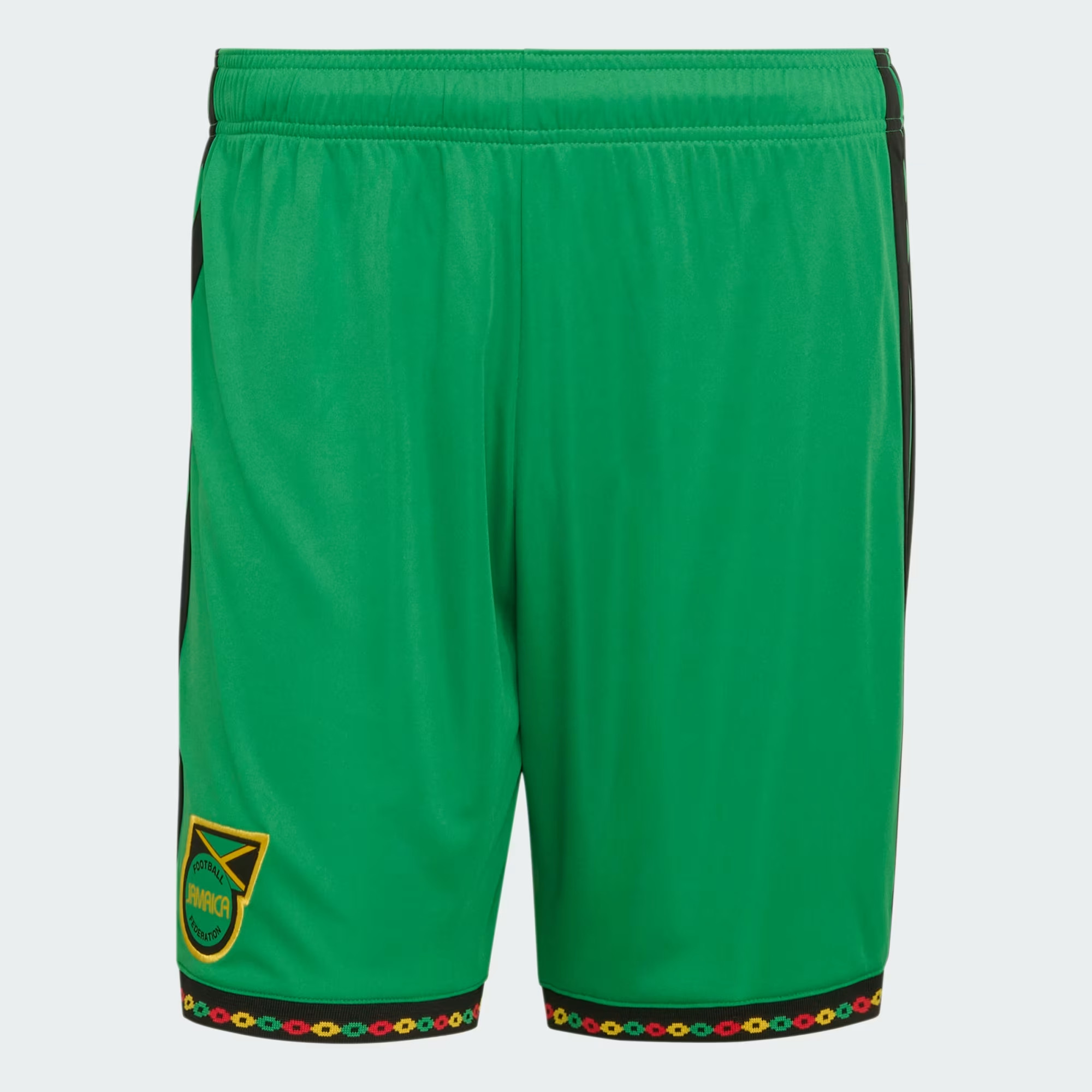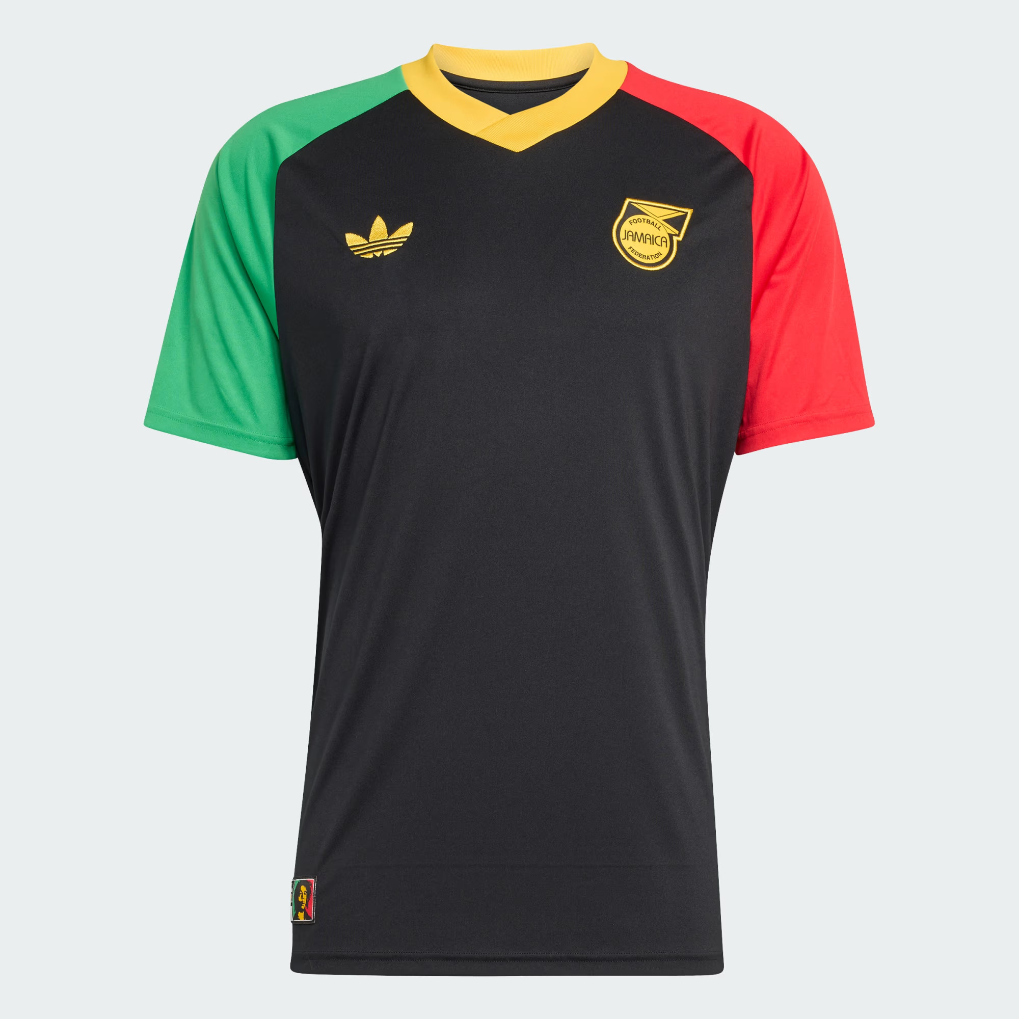 Bestel het Jamaica voetbalshirt altijd via voetbalshirts.com! In deze tenues speelt het Jamaicaanse voetbalelftal (mannen en vrouwen) de kwalificatie- en oefenwedstrijden ter voorbereiding op het WK voetbal en de Gold Cup, alsook de interlands tijdens het wereldkampioenschap en het kampioenschap van Noord-en Midden Amerika. In 1925 speelde het land de eerste interland. Het Jamaica voetbalshirt is tegenwoordig overwegend geel met zwarte en groene accenten, geïnspireerd door de kleuren van de nationale vlag. Dit is echter niet altijd het geval geweest. In de beginjaren van het nationale voetbalteam droegen ''The Reggae Boyz'' zo nu en dan een groen thuisshirt. Sinds de jaren '70 is het Jamaica voetbalshirt geel met groene en zwarte details. Het tenue wodt compleet gemaakt door een groen voetbalbroekje en sokken in stijl van de kleuren van de nationale vlag. Het uitshirt is vaak zwart of groen, maar dit kan ieder seizoen verschillen. Tot begin jaren '70 verzorgde de nationale voetbalbond van Jamaica (Jamaica Football Federation/JFF) de tenues zelf en tijdens de jaren '70 en '80 was Puma de kledingsponsor. Daarna volgden merken als Score, Lanzera, Kappa, Uhlsport, Romai, Umbro, Puma en Adidas. Check hier het overzicht van beschikbare Jamaica voetbalshirts, alsook de historie van het voetbalshirt en de sponsors. Hier vind je bovendien goedkope t-shirts en andere merchandising om het nationale mannen-of vrouwenteam mee aan te moedigen!