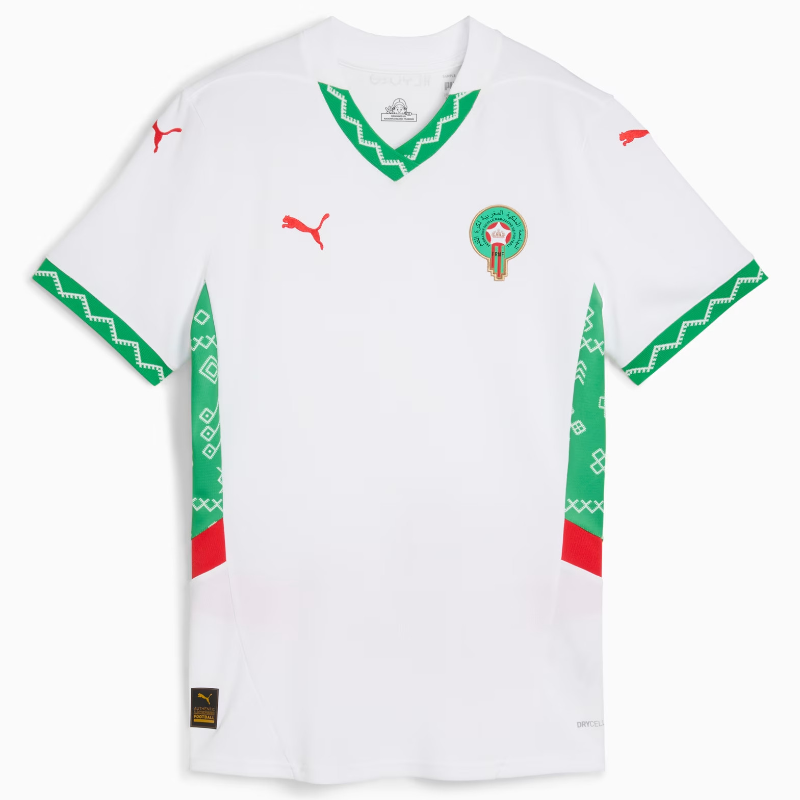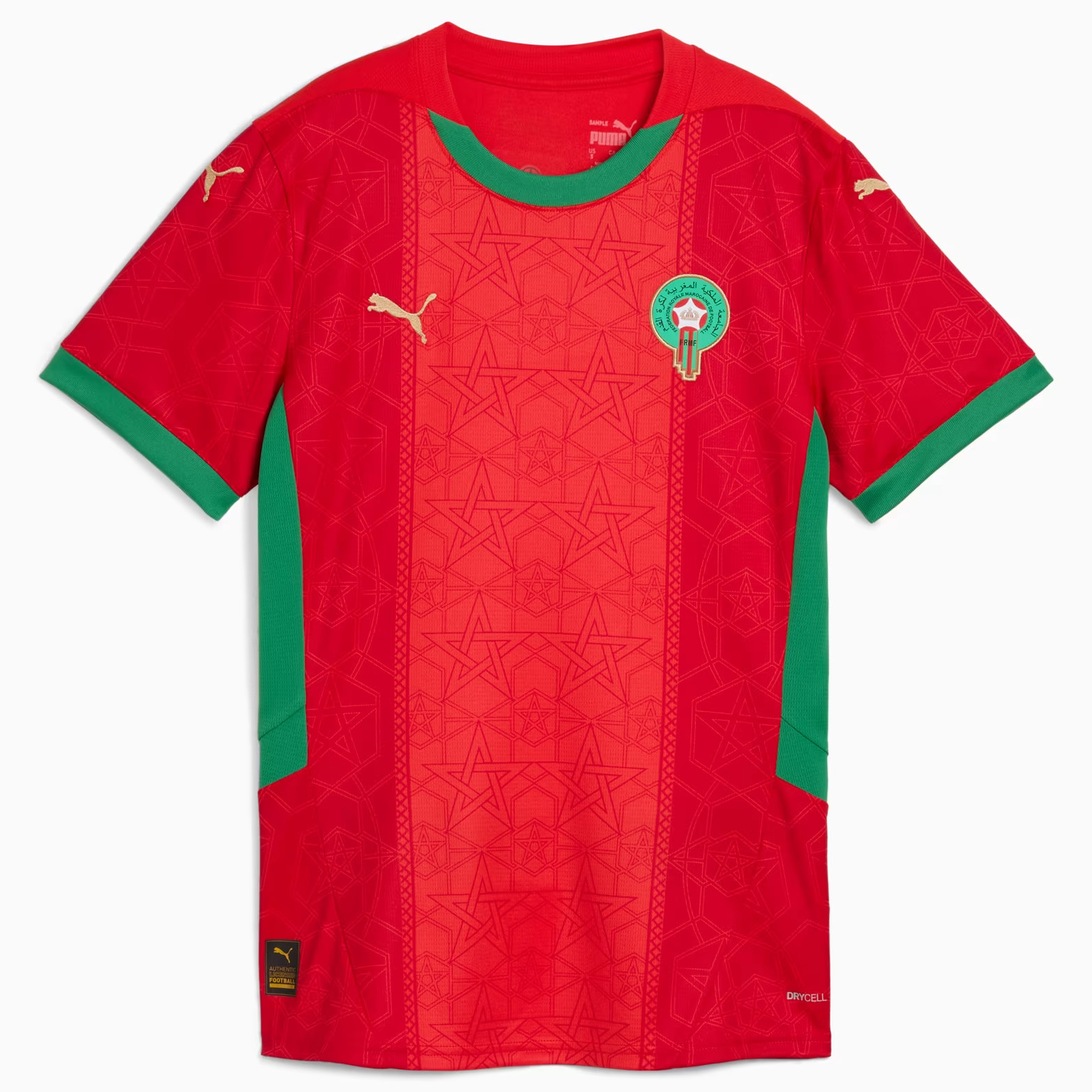 Bestel het Marokko voetbalshirt altijd via voetbalshirts.com! In deze tenues speelt het Marokkaanse voetbalelftal (mannen en vrouwen) de kwalificatie- en oefenwedstrijden ter voorbereiding op de Afrika Cup (of Nations) of een WK, alsook de wedstrijden tijdens het wereldkampioenschap voetbal en het Afrikaans kampioenschap. Het Marokko voetbalshirt is sinds de eerste interland in 1957 in stijl van de kleuren van de vlag: rood/groen. In sommige periodes was het voetbalshirt overwegend rood met groene accenten en in sommige periodes vice versa. Zo droeg het nationale voetbalelftal in 1984 een groen thuisshirt en rood uitshirt. Ook in de periode 1998-2010 had Marokko een groen thuisshirt en rood uitshirt. Sinds 2012 hebben de ‘’Atlas’’ Lions weer een rood thuisshirt en een groen of wit uitshirt. Het Marokko thuistenue wordt gecompleteerd door een groen voetbalbroekje en witte, rode of groene sokken. Het tenue bevat standaard verwijzingen naar de rijke cultuur en historie van het land en het nationale team. Tot mid jaren ’70 verzorgde de Marokkaanse voetbalbond/ FRMF – Fédération royale marocaine de football de tenues zelf en in 1976 was adidas de eerste kledingsponsor. Daarna volgden merken als Lotto, Puma, Nike en Adidas.