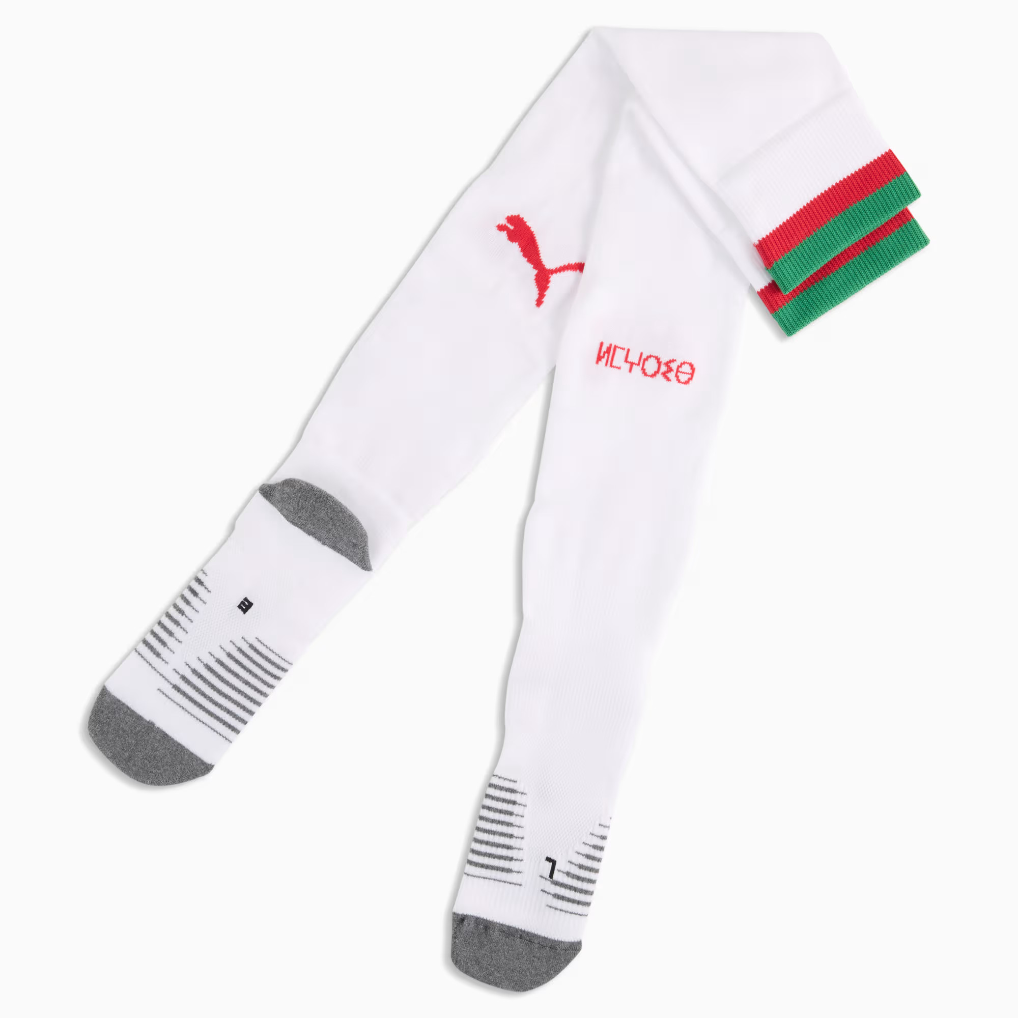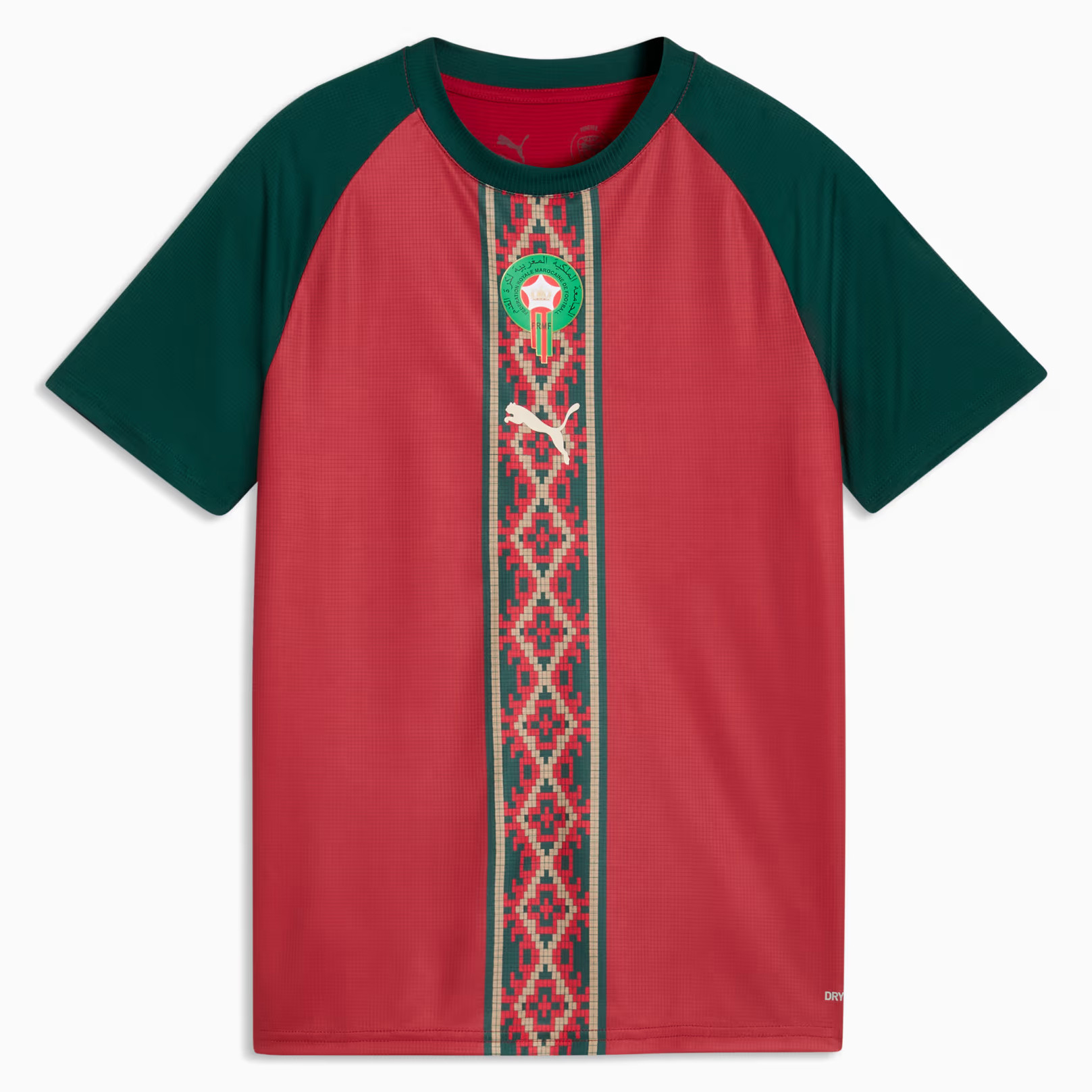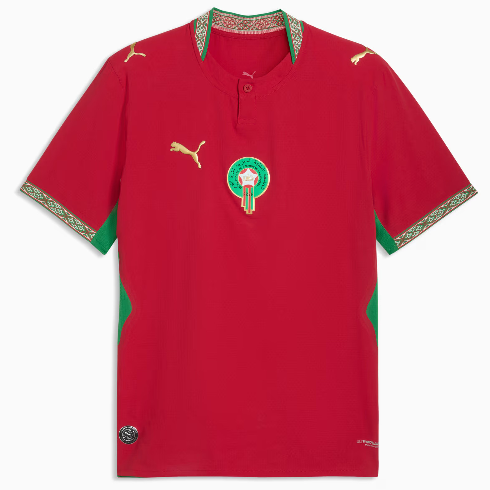 Bestel het Marokko voetbalshirt altijd via voetbalshirts.com! In deze tenues speelt het Marokkaanse voetbalelftal (mannen en vrouwen) de kwalificatie- en oefenwedstrijden ter voorbereiding op de Afrika Cup (of Nations) of een WK, alsook de wedstrijden tijdens het wereldkampioenschap voetbal en het Afrikaans kampioenschap. Het Marokko voetbalshirt is sinds de eerste interland in 1957 in stijl van de kleuren van de vlag: rood/groen. In sommige periodes was het voetbalshirt overwegend rood met groene accenten en in sommige periodes vice versa. Zo droeg het nationale voetbalelftal in 1984 een groen thuisshirt en rood uitshirt. Ook in de periode 1998-2010 had Marokko een groen thuisshirt en rood uitshirt. Sinds 2012 hebben de ‘’Atlas’’ Lions weer een rood thuisshirt en een groen of wit uitshirt. Het Marokko thuistenue wordt gecompleteerd door een groen voetbalbroekje en witte, rode of groene sokken. Het tenue bevat standaard verwijzingen naar de rijke cultuur en historie van het land en het nationale team. Tot mid jaren ’70 verzorgde de Marokkaanse voetbalbond/ FRMF – Fédération royale marocaine de football de tenues zelf en in 1976 was adidas de eerste kledingsponsor. Daarna volgden merken als Lotto, Puma, Nike en Adidas.