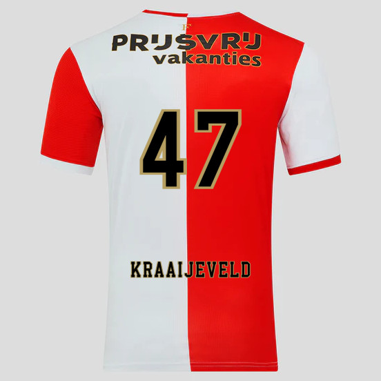 In 1908 werd Feyenoord opgericht en had de club de naam Wilhelmina. In de beginjaren van de Rotterdamse voetbalclub speelde de club in een rood voetbalshirt met blauwe mouwen en een wit voetbalbroekje. Na een fusie met ‘’Volharding’’ in 1909 werd de naam van de club veranderd in HFC. Echter omdat er in Haarlem ook al een club met de naam HFC was, werd de naam van de club veranderd in RVV Celiretas. In deze periode speelde de Rotterdamse voetbalclub in horizontaal zwart/geel gestreepte voetbalshirts met een wit voetbalbroekje. Toen Celiritas in 1912 promoveerde naar de NVB was er opnieuw een club die al met deze naam bij de voetbalbond aangesloten was. In 1912 werd de naam van de club veranderd in Rotterdamsche Voetbal Vereeniging Feijenoord. Sindsdien speelt Feyenoord in het voetbalshirt met het iconische half-om- half design. De rechterkant van het voetbalshirt is rood en de linkerkant is wit. De mouwen zijn contrasterend hieraan. Het tenue wordt steevast gecombineerd met een zwart voetbalbroekje en zwarte sokken met contrasterende accenten.