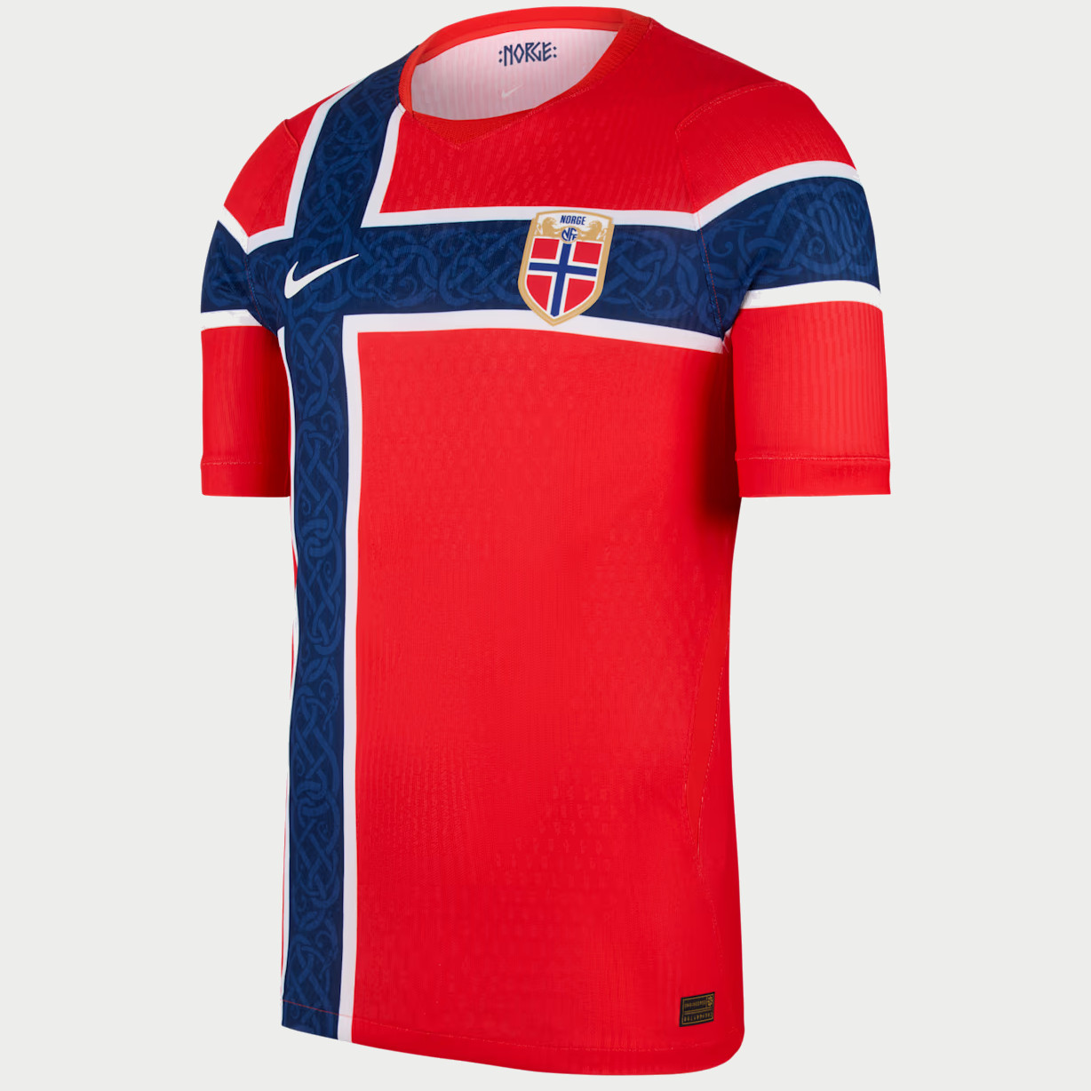 Bestel het Noorwegen voetbalshirt altijd via voetbalshirts.com! In deze voetbalshirts speelt het Noorse voetbalelftal (mannen en vrouwen) de kwalificatie- en oefenwedstrijden ter voorbereiding op het EK of WK, alsook tijdens deze toernooien. Op 12 juli 1908 speelde Noorwegen de eerste interland tegen Zweden. Deze wedstrijd ging met 11-3 verloren. Noorwegen plaatste zich in de historie drie keer voor een WK (1938, 1994, 1996) en één keer aan een EK (2000). Sinds de eerste interland speelt Noorwegen de interlands in een rood voetbalshirt. Deze kleur is afgeleid van de nationale vlag, welke gekenmerkt wordt door een donkerblauw/wit kruis op een rode achtergrond. Tot 2008 stond de nationale vlag altijd op de Noorwegen voetbalshirts. Het logo van de voetbalbond wordt inmiddels gekenmerkt door een schild in stijl van de nationale vlag met daarboven twee leeuwen uit het wapen van het land en de letters NFF (Norway Football Federation). Het Noorwegen uitshirt is vaak wit, maar dit kan ieder jaar verschillen. Tot 1976 verzorgde de voetbalbond de tenues zelf en in dit jaar werd Le Coq Sportif de eerste kledingsponsor. Daarna volgden merken als Hummel, Adidas en Umbro. Sinds 2015 is Nike de kledingsponsor van alle vertegenwoordigende voetbalteams van het land. Check hier de historie van het Noorwegen voetbalshirt, alsook beschikbare producten, zoals het thuisshirt, uitshirt, t-shirts, trainingsjacks, goedkope t-shirts en hoodies!