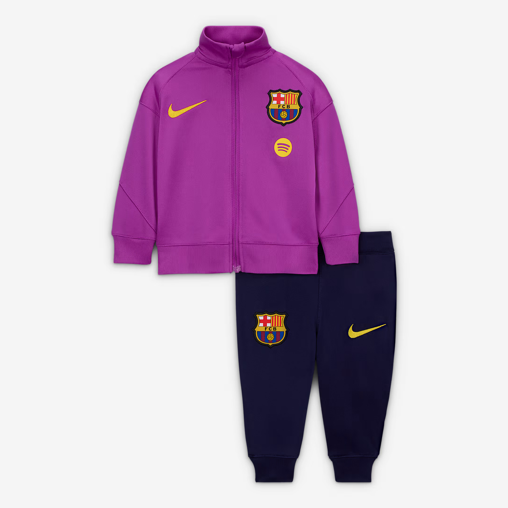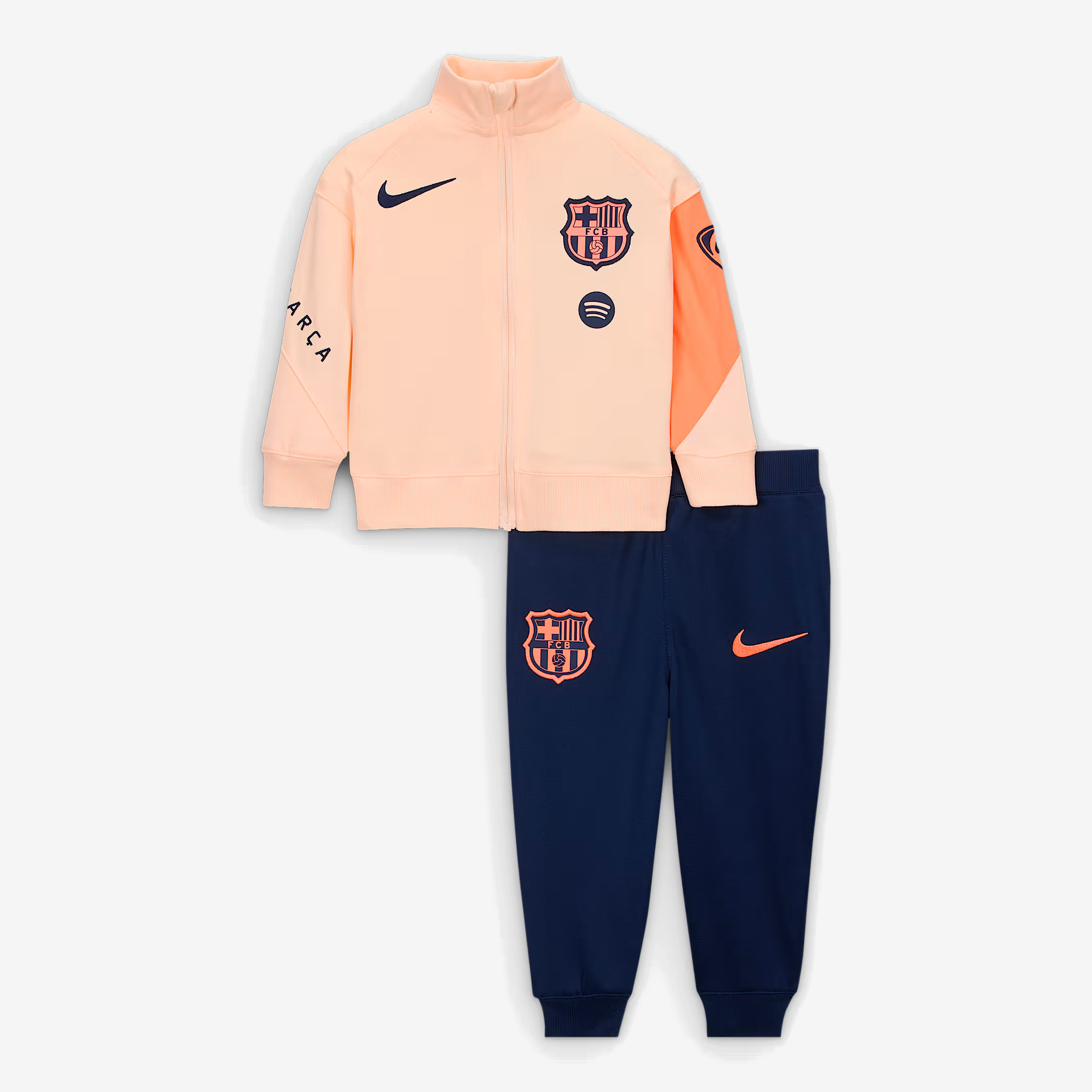 Tot 1982 verzorgde FC Barcelona de tenues zelf en in 1982 was het Spaanse sportmerk Meyba de eerste kledingsponsor van ‘’Blaugrana’’. In de voetbalshirts van Meyba won FC Barcelona onder leiding van trainer Johan Cruyff in 1992 ook de Europa Cup I. In 1992 volgde Kappa Meyba op als kledingsponsor en sinds 1998 verzorgt Nike de tenues en trainingskleding van de club. Het tenue is lang sponsorloos gebleven. In 2005 ging Barca een samenwerking aan met Unicef en stond het logo van de stichting een aantal jaar op het voetbalshirt. FC Barcelona maakte hiervoor jaarlijks een bedrag van € 1,5 miljoen over naar Unicef. In 2011 was Qatar Foundation de eerste echte shirtsponsor van FC Barcelona. Daarna volgden Qatar Airways (2013-2017), Rakuten (2017-2022) en Spotify.