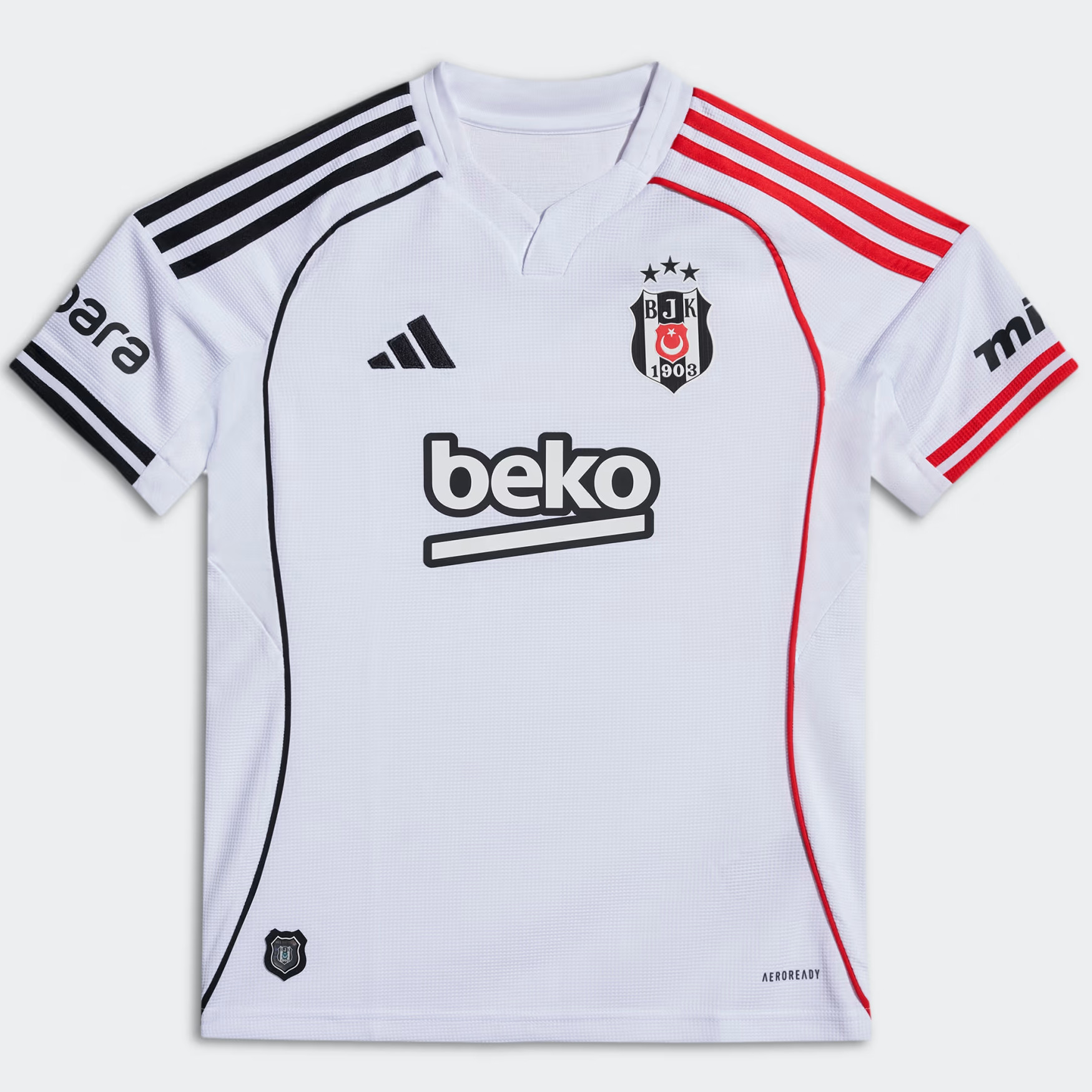 Bestel het Besiktas voetbalshirt altijd via voetbalshirts.com! In deze tenues speelt Beşiktaş Jimnastik Kulübü de Turkse Süper Lig, beker- en Europese wedstrijden dit seizoen. Besiktas is op 3 maart 1903 opgericht en speelt de thuiswedstrijden in het Beşiktaş Stadium in Istanbul. Sinds de oprichting van de club draagt Besiktas een zwart/wit voetbalshirt, al gaan er ook verhalen dat de clubkleuren gedurende een korte periode rood en wit waren. Deze kleuren zouden geïnspireerd zijn door de martelaars tijdens de Balkanoorlog in 1912 en 1913. De bijnaam van Besiktas is Kara Kartallar (zwarte adelaars) of Siyah Beyazlılar (de zwart/witten), geïnspireerd door de clubkleuren en het clublogo. Het thuisshirt heeft tegenwoordig verticale zwarte en witte banen, maar er zijn verschillende variaties geweest in deze kleurencombinatie. Het uitshirt van Besiktas is vaak wit, rood of een combinatie van beide kleuren. In 1981 was adidas de eerste kledingsponsor van de Turkse voetbalclub en voor die periode regelde de club de tenues zelf. Daarna volgden tal van andere sportmerken. Pereja was tijdens het seizoen 1977-1978 de eerste shirtsponsor van Besiktas. Check hier het overzicht van beschikbare Besiktas producten, alsook de historie van het voetbalshirt en de sponsors!
