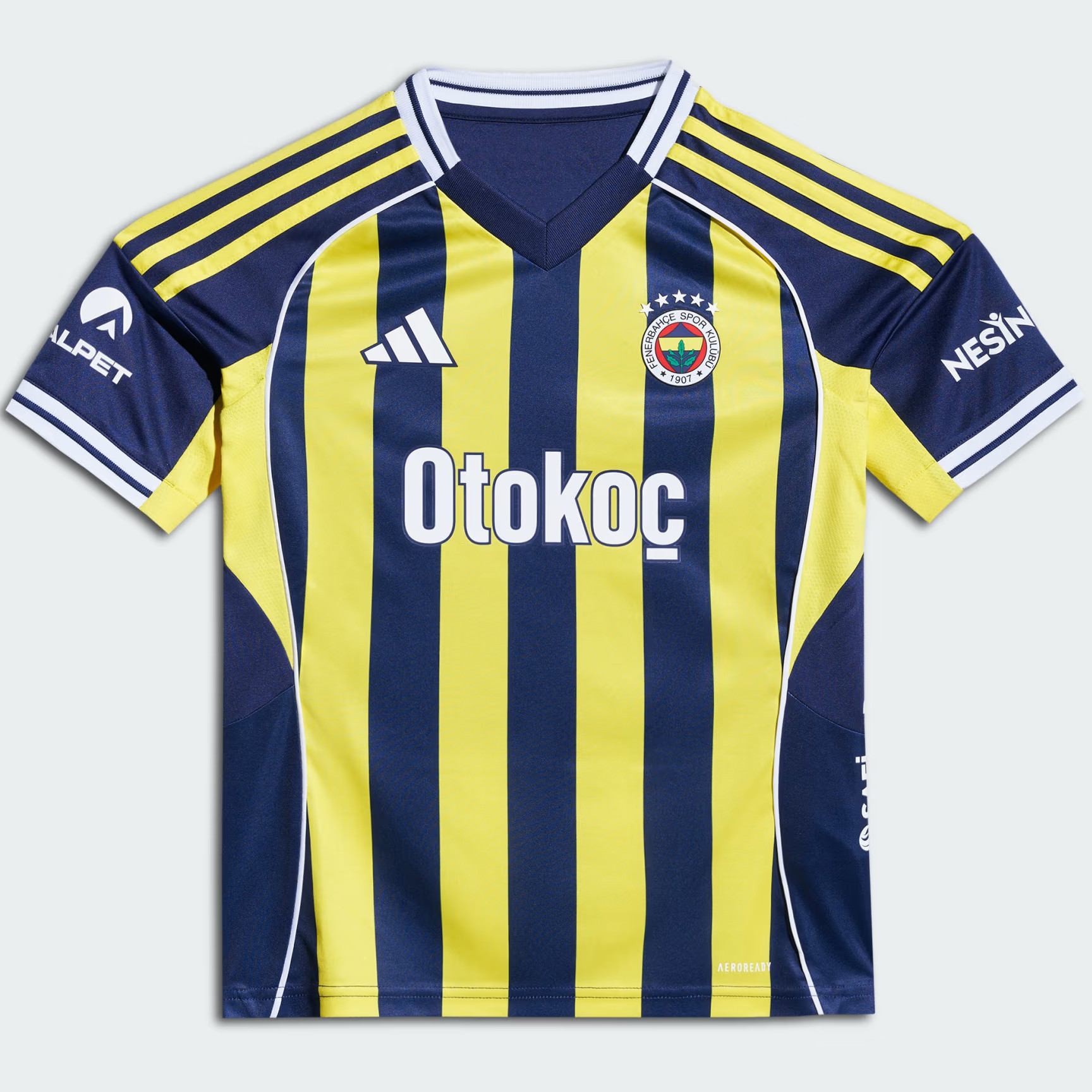 Bestel het Fenerbahce voetbalshirt altijd via voetbalshirts.com! In deze voetbalshirts speelt Fenerbahçe Futbol Anonim Şirket de Turkse Süper Lig, beker en Europese wedstrijden dit seizoen. ‘’Fener’’ is op 3 mei 1907 opgericht en speelt de thuiswedstrijden in het Şükrü Saracoğlu Stadion. De bijnaam van de club uit Istanbul is ‘’ Sarı Kanaryalar’’ (de gele kanaries) of Sarı Lacivertliler (de geel/donkerblauwen), verwijzend naar de clubkleuren. In de eerste jaren na de oprichting droeg de Turkse voetbalclub een geel/wit voetbalshirt. Deze clubkleuren waren geïnspireerd door de kleuren van de narcissen rondom de vuurtoren op de Fenerbahce kaap. In 1908/1909 veranderden de clubkleuren naar navy blauw en geel. Sindsdien draagt de club een donkerblauw/geel gestreept voetbalshirt met een wit voetbalbroekje en witte sokken. Het Fenerbahce uitshirt of 3e voetbalshirt zijn vaak donkerblauw of wit, maar hiervoor worden ook kleurencombinaties gebruikt. Tot eind jaren ’70 verzorgde Fenerbahce de voetbalshirts en tenues zelf en in 1977 was Admiral de eerste kledingsponsor. In de historie van de club heeft Fenerbahce maar een beperkt aantal merken als kledingsponsor gehad (Admiral, Adidas, Güner, Fenerium en Puma). Dat gaat niet op voor de shirtsponsors. PeReJa was in 1977 ook de eerste shirtsponsor van de club uit Instanbul en daarna volgden verschillende bedrijven. Check hier het overzicht van beschikbare Fenerbahce voetbalshirts, alsook de historie van het shirt en de sponsors!