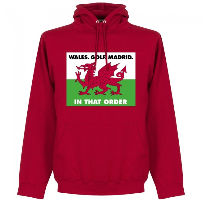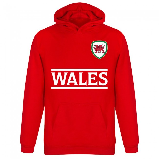 Bestel hier direct en snel de casual Wales hoodie voor volwassenen en kinderen. Deze Wales trui kun je namelijk bestellen in de maten 98, 104, 110, 116, 128, 140 en 152 voor kinderen en de maten S, M, L, XL en XXL voor volwassenen. Dit is de perfecte trui om het nationale voetbalelftal van Wales mee aan te moedigen tijdens belangrijke interlands of tijdens toernooien als een WK of EK. De hoodie van het nationale elftal is in stijl van de kleuren van het tenue van het Welsh voetbalelftal. Deze hoodie is rood en bevat op het midden de naam van het land, omringd door twee horizontale banen. De linkerborst van de trui bevat een print van een vintage logo van het nationale elftal. Verder is de hoodie uitgerust met een capuchon en bevat het twee steekzakken aan de zijkanten van de trui. De hoodie bestaat deels uit katoen en deels uit polyester. Dit zorgt ervoor dat de trui zacht aanvoelt en je ook warm houdt. Klik direct op de buttons om deze casual Wales trui te kopen! Directe levering!